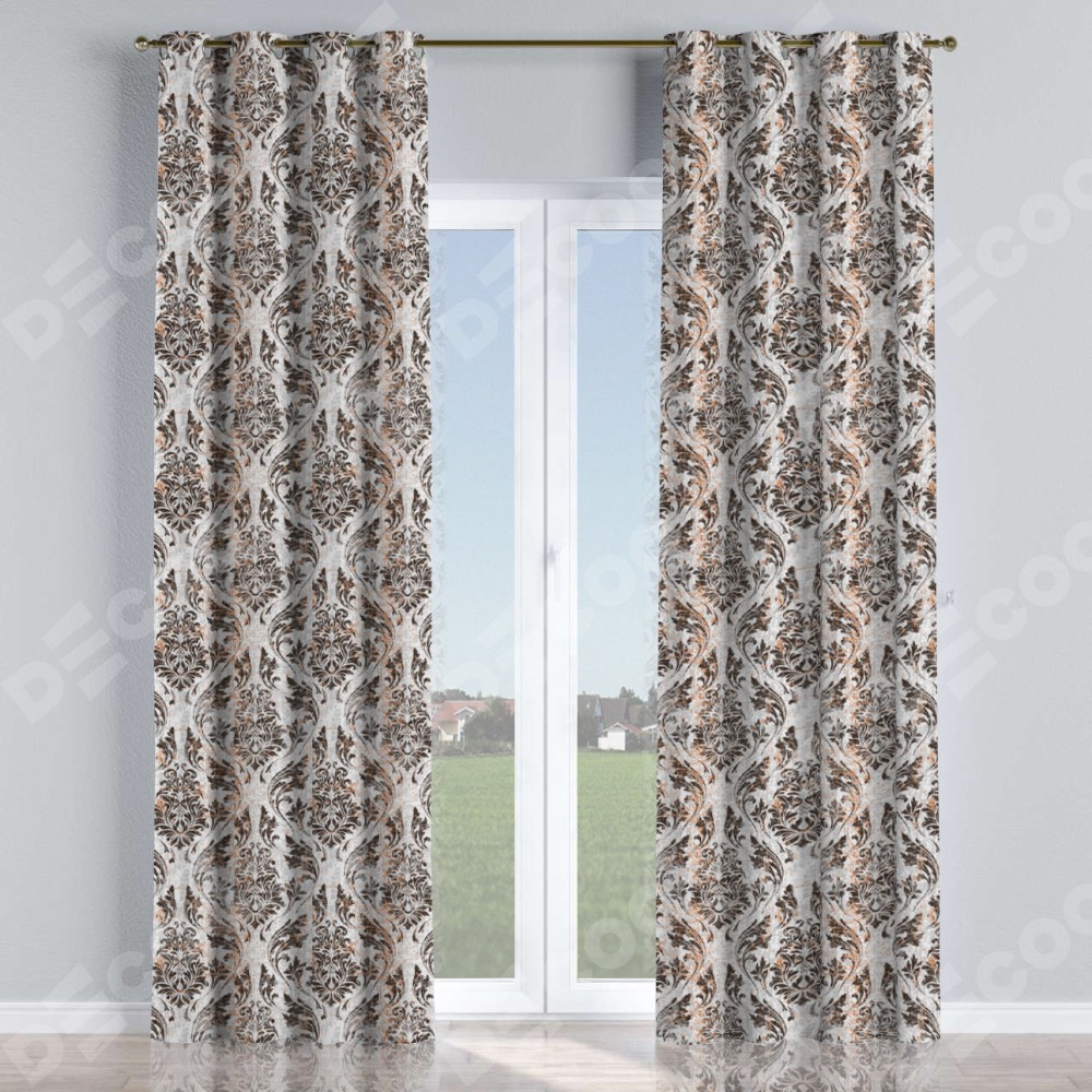 Комплект прямых штор, от производителя «Cortin», пошиты из ткани блэкаут с нанесением сублимационной печати «Дамаск тёмный». Данная модель пошита на люверсах, комплектуется на выбор круглым карнизом и подходит для монтажа на стену или потолок. Прямые шторы на люверсах шьются по стандарту с коэффициентом 1/2 (на 100 см. ширины проёма 200 см. ширины ткани), отличительным преимуществом данной модели является простой способ монтажа. Достаточно повесить ее на трубу и штора готова!