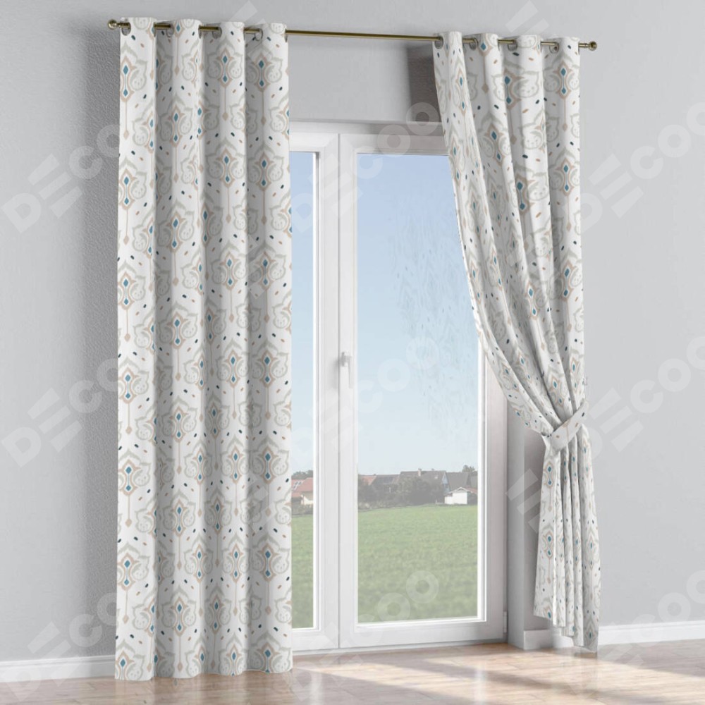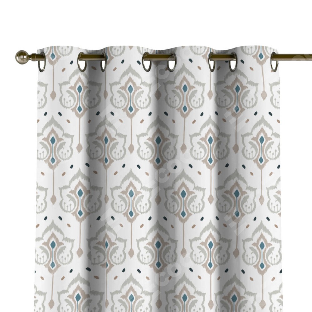 Комплект прямых штор, от производителя «Cortin», пошиты из ткани блэкаут с нанесением сублимационной печати «Икат узор». Данная модель пошита на люверсах, комплектуется на выбор круглым карнизом и подходит для монтажа на стену или потолок. Прямые шторы на люверсах шьются по стандарту с коэффициентом 1/2 (на 100 см. ширины проёма 200 см. ширины ткани), отличительным преимуществом данной модели является простой способ монтажа. Достаточно повесить ее на трубу и штора готова!