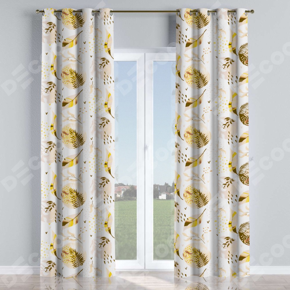 Комплект прямых штор, от производителя «Cortin», пошиты из ткани блэкаут с нанесением сублимационной печати «Золотые листья». Данная модель пошита на люверсах, комплектуется на выбор круглым карнизом и подходит для монтажа на стену или потолок. Прямые шторы на люверсах шьются по стандарту с коэффициентом 1/2 (на 100 см. ширины проёма 200 см. ширины ткани), отличительным преимуществом данной модели является простой способ монтажа. Достаточно повесить ее на трубу и штора готова!