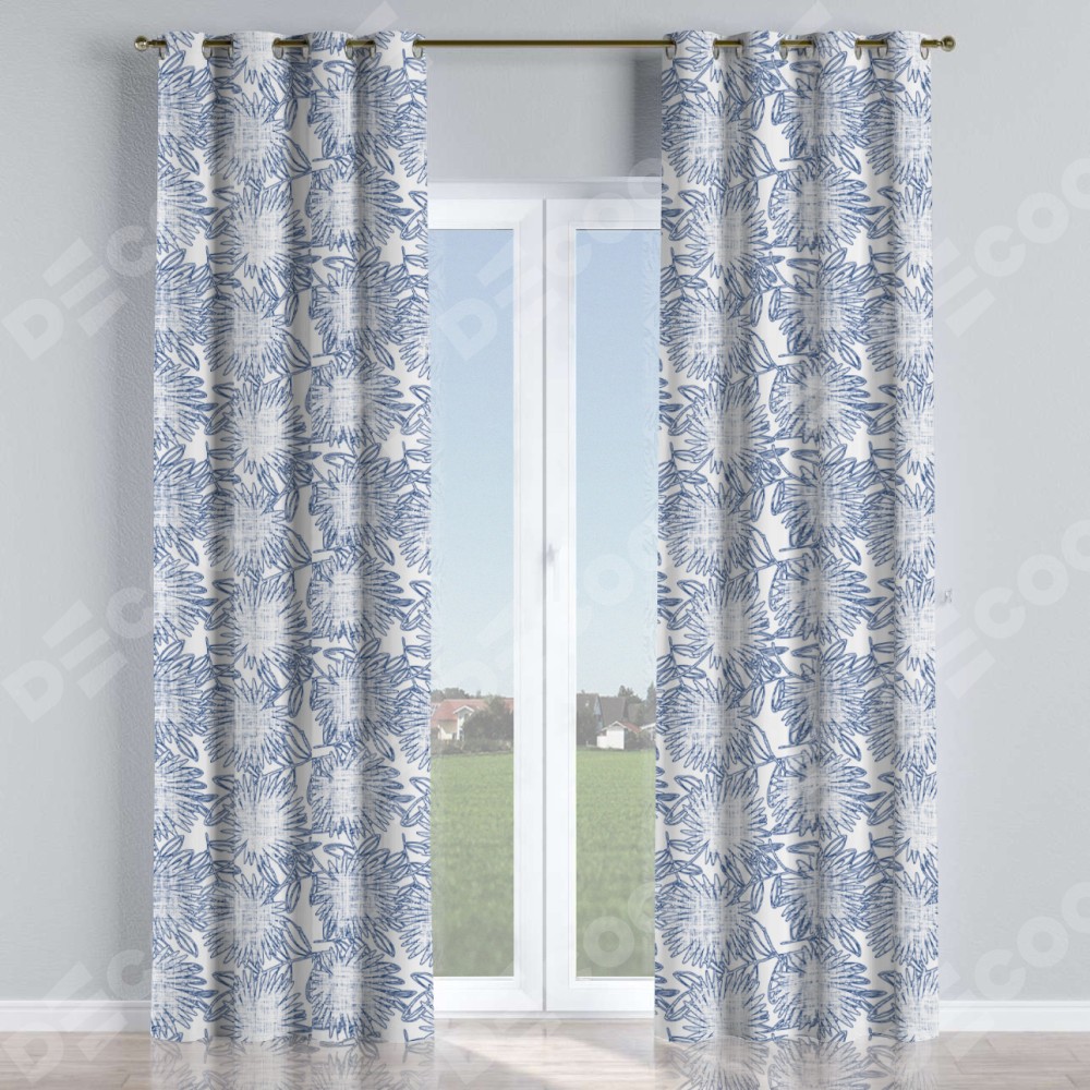 Комплект прямых штор, от производителя «Cortin», пошиты из ткани блэкаут с нанесением сублимационной печати «Синий букет». Данная модель пошита на люверсах, комплектуется на выбор круглым карнизом и подходит для монтажа на стену или потолок. Прямые шторы на люверсах шьются по стандарту с коэффициентом 1/2 (на 100 см. ширины проёма 200 см. ширины ткани), отличительным преимуществом данной модели является простой способ монтажа. Достаточно повесить ее на трубу и штора готова!