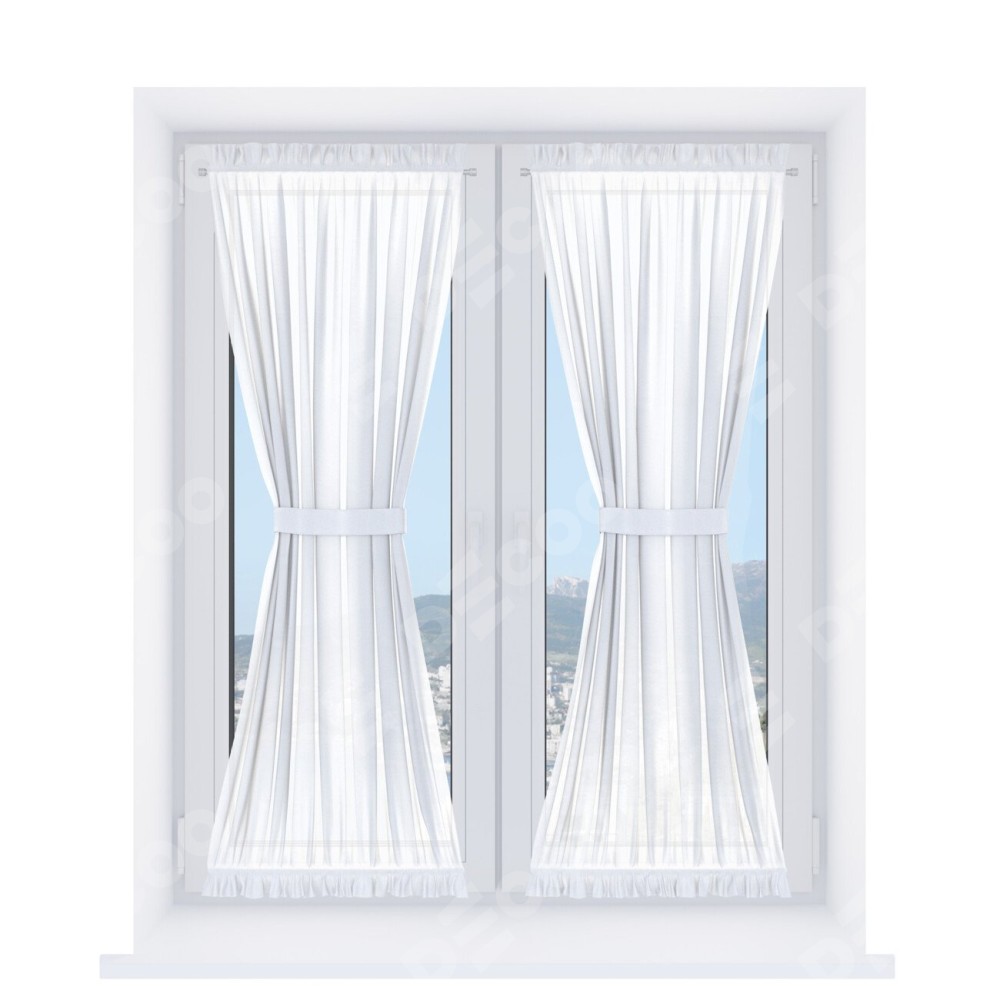 Штора «Песочные часы» производителя «Cortin», используется для створок окон и дверей, пошита из ткани лён белоснежный, артикул ткани 7439.