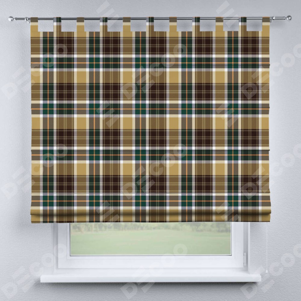 Римская штора производителя «Cortin», используется для проёма, пошита из ткани блэкаут с нанесением сублимационной печати «Бежево-зелёная клетка». Данная модель пошита на петлях, комплектуется на выбор круглым карнизом и подходит для монтажа на стену. Римская штора на петлях имеет простую систему регулировки высоты, отличительным преимуществом данной модели является простой способ монтажа. Достаточно повесить ее на трубу и штора готова!