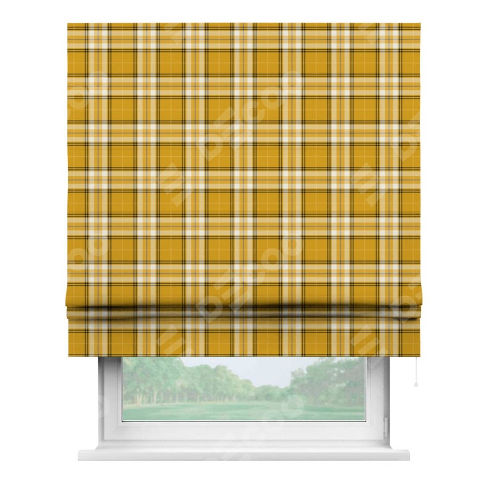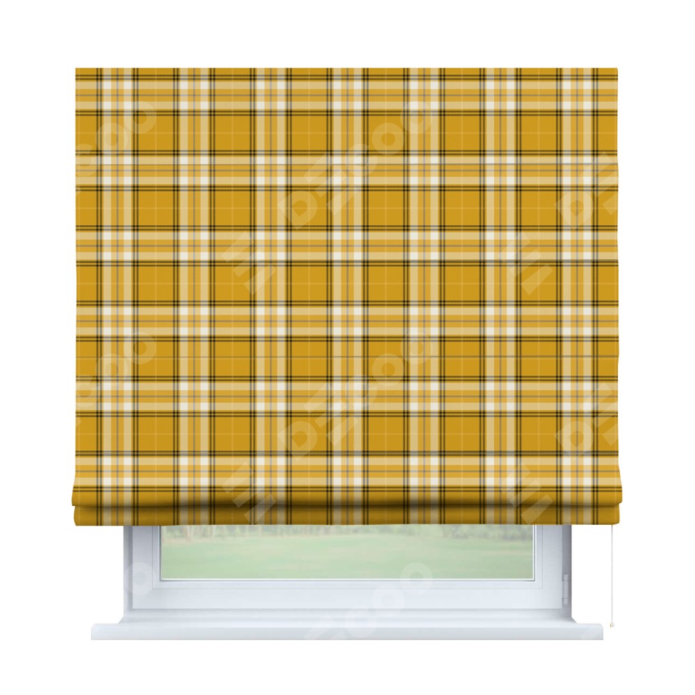 Римская штора «Кортин» для проема «Желто-горчичная клетка»