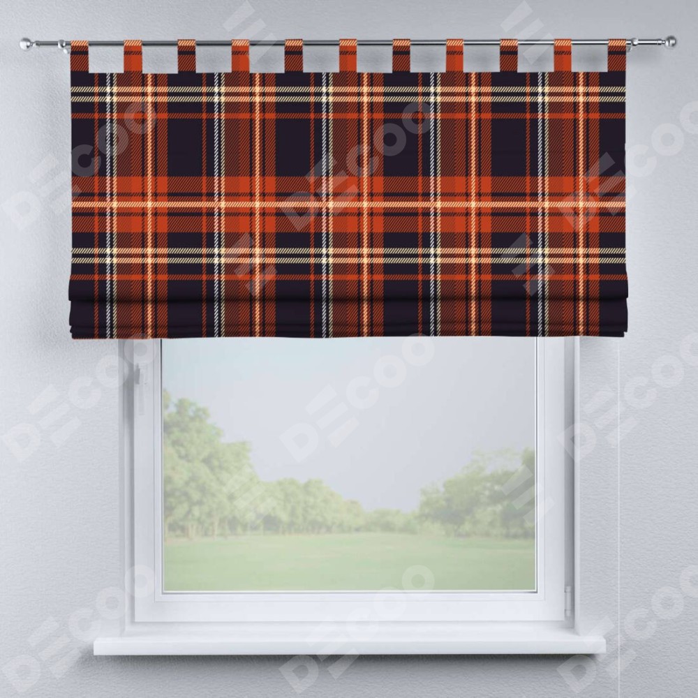 Римская штора производителя «Cortin», используется для проёма, пошита из ткани блэкаут с нанесением сублимационной печати «Сине-оранжевая клетка». Данная модель пошита на петлях, комплектуется на выбор круглым карнизом и подходит для монтажа на стену. Римская штора на петлях имеет простую систему регулировки высоты, отличительным преимуществом данной модели является простой способ монтажа. Достаточно повесить ее на трубу и штора готова!