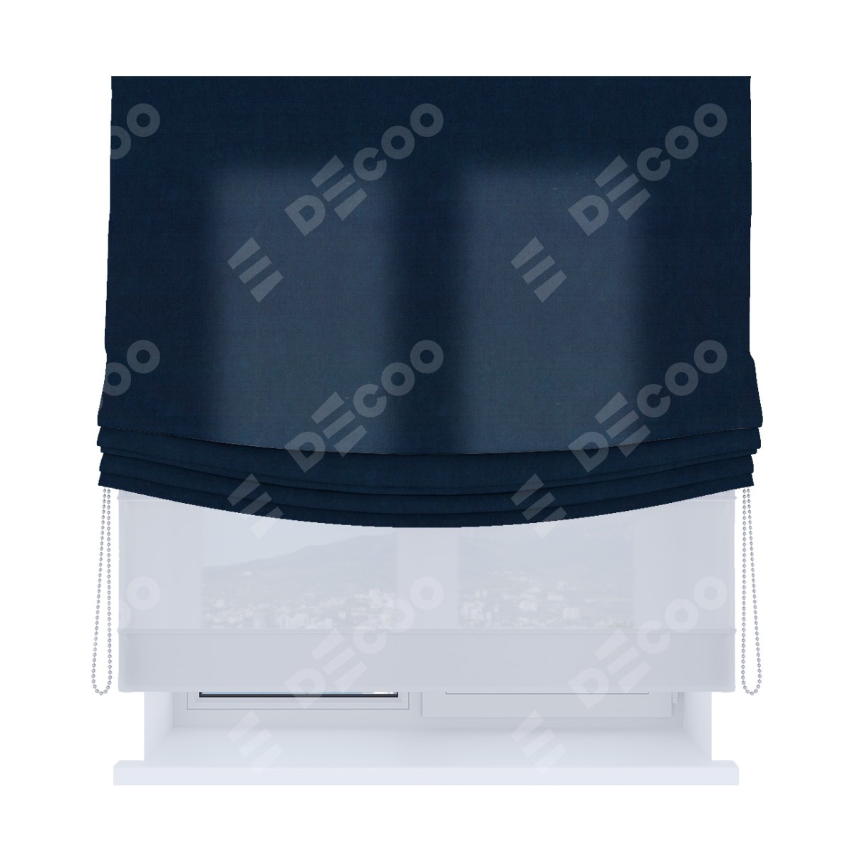 Римская штора день-ночь производителя «Cortin», используется для проёма, пошита из двух полотен, с лицевой стороны вельвет тёмно-синий артикул 14152, вторая ткань тюль (по стандарту комплектуется тюль белого цвета артикул V-01). Имеет универсальный механизм и подходит для монтажа: на потолок, на стену и в нишу. Удобное управление каждой шторой отдельно.