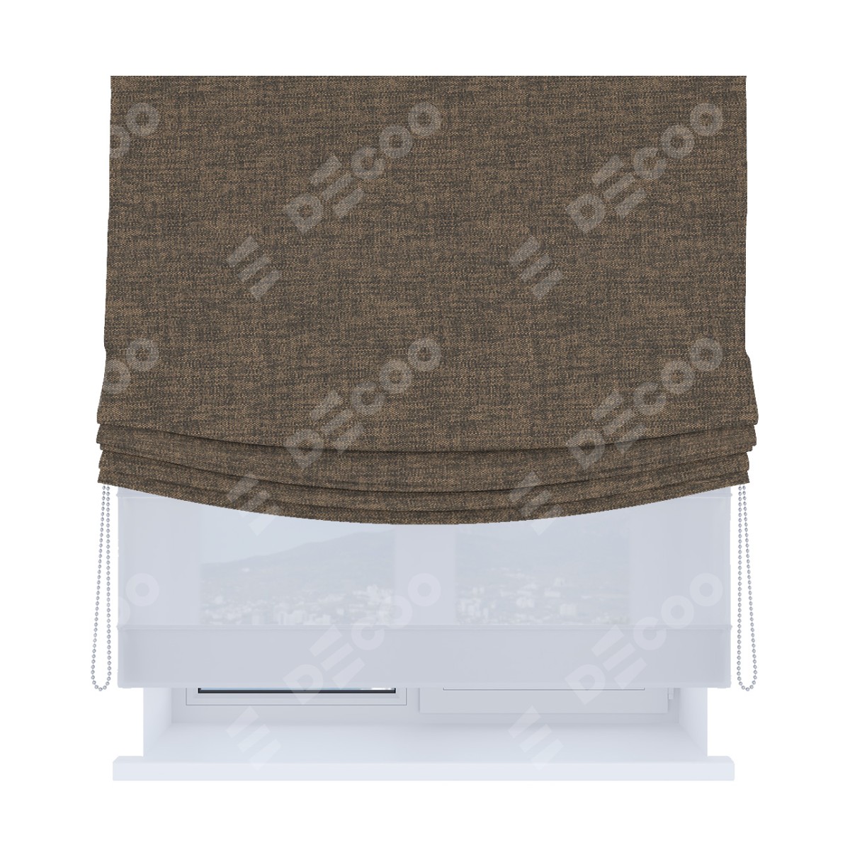 Римская штора день-ночь производителя «Cortin», используется для проёма, пошита из двух полотен, с лицевой стороны рогожка димаут коричневый артикул 80420, вторая ткань тюль (по стандарту комплектуется тюль белого цвета артикул V-01). Имеет универсальный механизм и подходит для монтажа: на потолок, на стену и в нишу. Удобное управление каждой шторой отдельно.