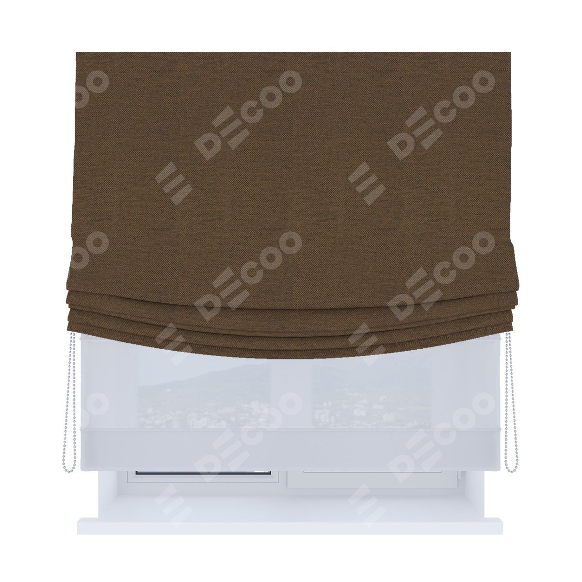 Римская штора день-ночь производителя «Cortin», используется для проёма, пошита из двух полотен, с лицевой стороны лён димаут тёмно-коричневый артикул 83030, вторая ткань тюль (по стандарту комплектуется тюль белого цвета артикул V-01). Имеет универсальный механизм и подходит для монтажа: на потолок, на стену и в нишу. Удобное управление каждой шторой отдельно.
