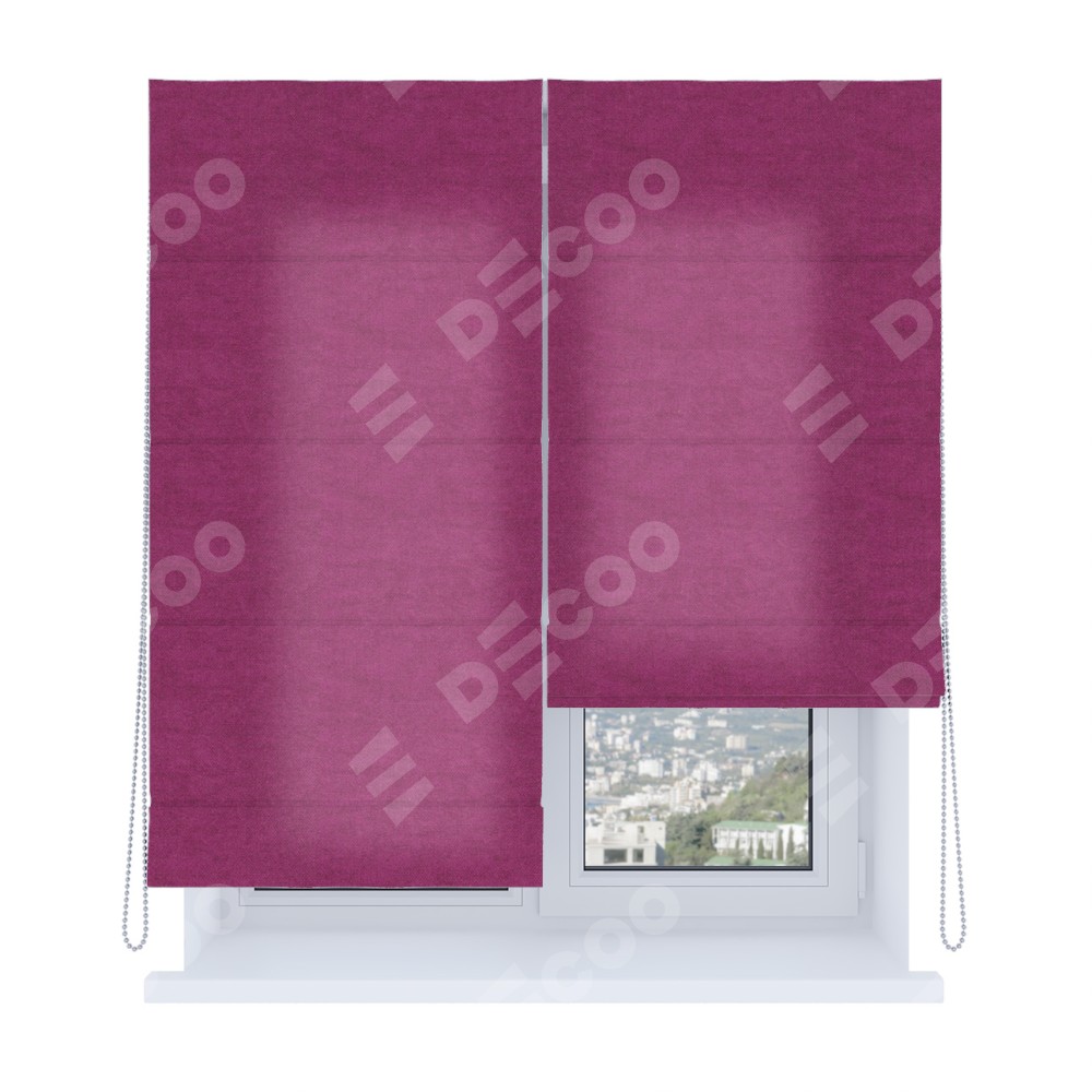 Римская штора производителя «Cortin», используется для проёма, пошита из ткани вельвет фиолетовый, артикул ткани 85552. Имеет универсальный механизм и подходит для монтажа: на потолок, на стену и в нишу. Удобное управление каждой шторой отдельно.