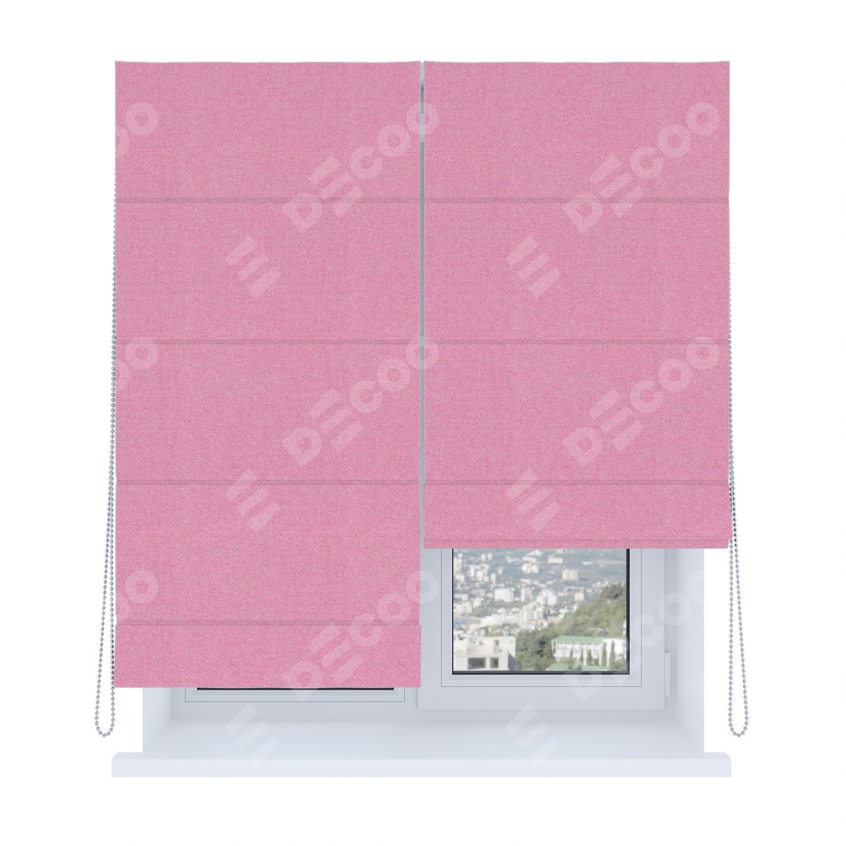 Римская штора производителя «Cortin», используется для проёма, пошита из ткани лён димаут розовый, артикул ткани 16257. Имеет универсальный механизм и подходит для монтажа: на потолок, на стену и в нишу. Удобное управление каждой шторой отдельно.