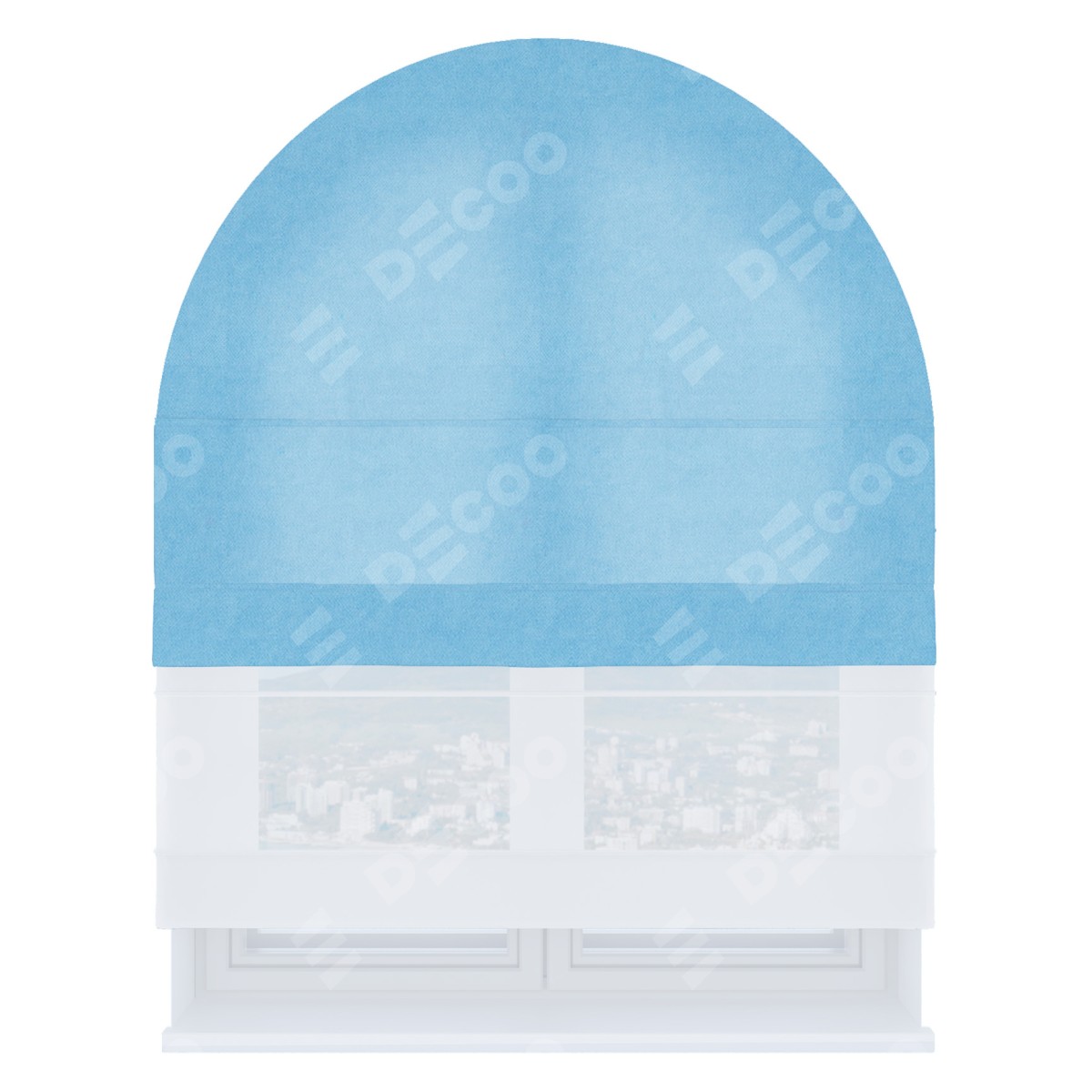 Римская штора день-ночь производителя «Cortin», используется для арочного проёма, пошита из двух полотен, с лицевой стороны вельвет голубой артикул 85544, вторая ткань тюль (по стандарту комплектуется тюль белого цвета артикул V-01). Штора шьётся по индивидуальным размерам, для данного типа римской шторы возможная ширина от 60 до 300 см. Удобное управление каждой шторой отдельно.