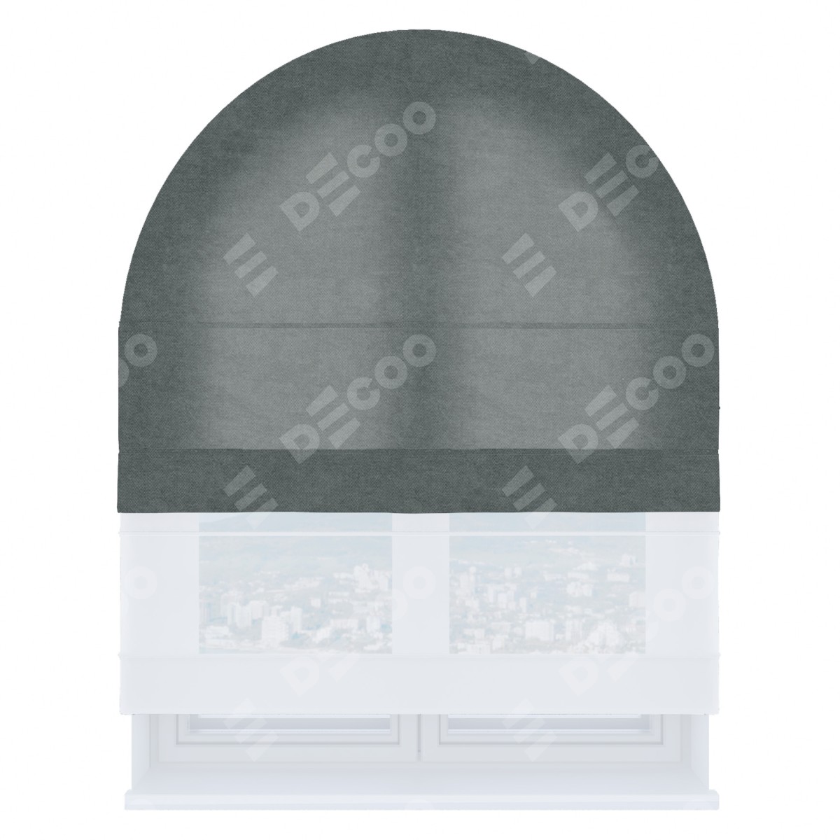 Римская штора день-ночь производителя «Cortin», используется для арочного проёма, пошита из двух полотен, с лицевой стороны вельвет серый артикул 85542, вторая ткань тюль (по стандарту комплектуется тюль белого цвета артикул V-01). Штора шьётся по индивидуальным размерам, для данного типа римской шторы возможная ширина от 60 до 300 см. Удобное управление каждой шторой отдельно.