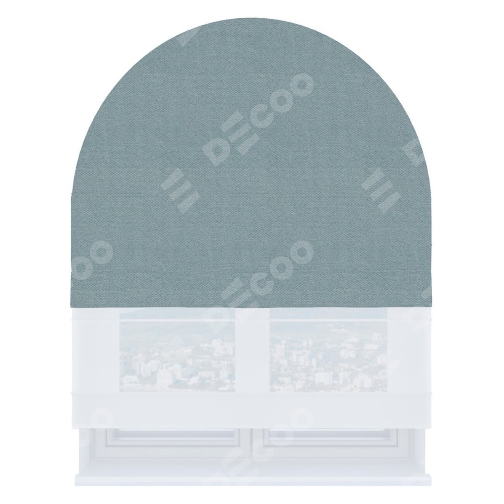 Римская штора день-ночь производителя «Cortin», используется для арочного проёма, пошита из двух полотен, с лицевой стороны блэкаут тиснение с блеском синий артикул 34625, вторая ткань тюль (по стандарту комплектуется тюль белого цвета артикул V-01). Изнаночная сторона основного материала черного цвета, что обеспечивает необходимую светонепроницаемость. Штора шьётся по индивидуальным размерам, для данного типа римской шторы возможная ширина от 60 до 300 см. Удобное управление каждой шторой отдельно.