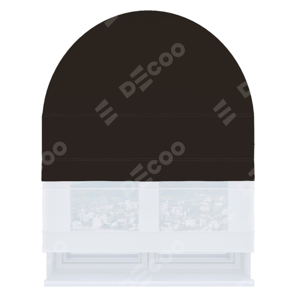 Римская штора день-ночь производителя «Cortin», используется для арочного проёма, пошита из двух полотен, с лицевой стороны блэкаут однотонный венге артикул 88286, вторая ткань тюль (по стандарту комплектуется тюль белого цвета артикул V-01). Штора шьётся по индивидуальным размерам, для данного типа римской шторы возможная ширина от 60 до 300 см. Удобное управление каждой шторой отдельно.