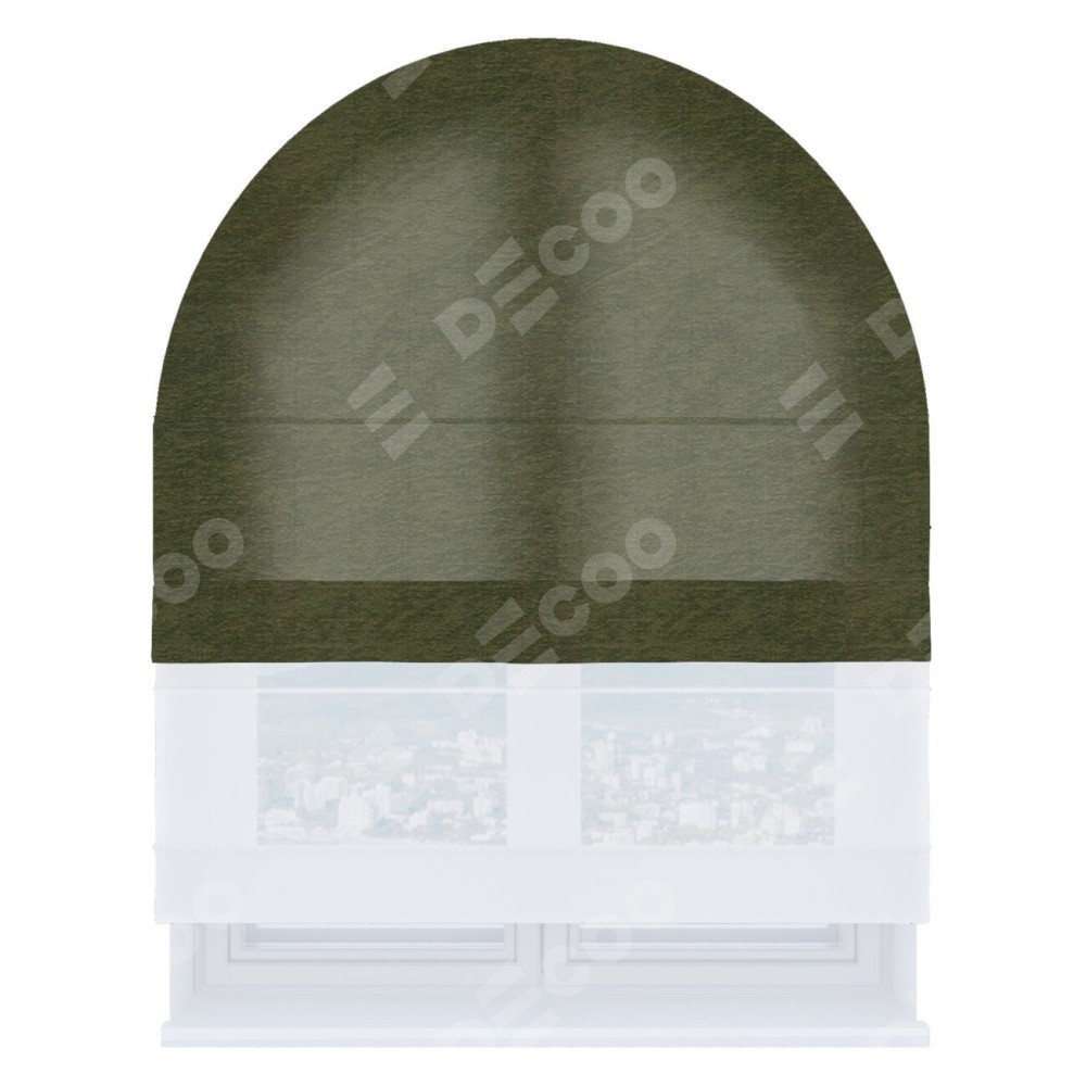 Римская штора день-ночь производителя «Cortin», используется для арочного проёма, пошита из двух полотен, с лицевой стороны софт однотонный зелёный артикул 33110, вторая ткань тюль (по стандарту комплектуется тюль белого цвета артикул V-01). Штора шьётся по индивидуальным размерам, для данного типа римской шторы возможная ширина от 60 до 300 см. Удобное управление каждой шторой отдельно.