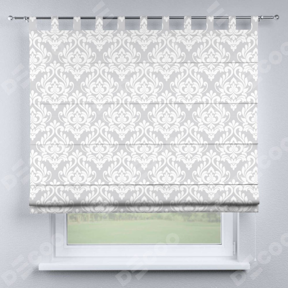 Римская штора производителя «Cortin», используется для проёма, пошита из ткани блэкаут с нанесением сублимационной печати «Дамаск светлый». Данная модель пошита на петлях, комплектуется на выбор круглым карнизом и подходит для монтажа на стену. Римская штора на петлях имеет простую систему регулировки высоты, отличительным преимуществом данной модели является простой способ монтажа. Достаточно повесить ее на трубу и штора готова!