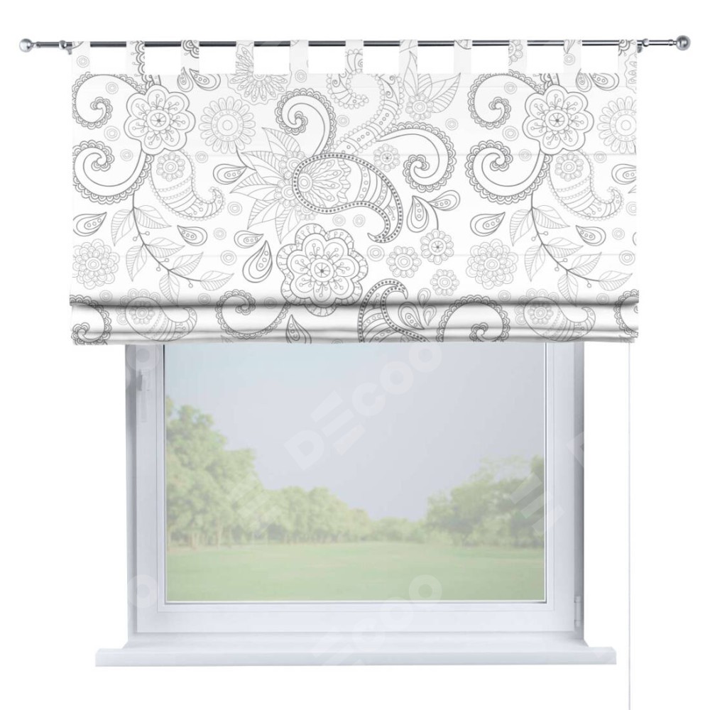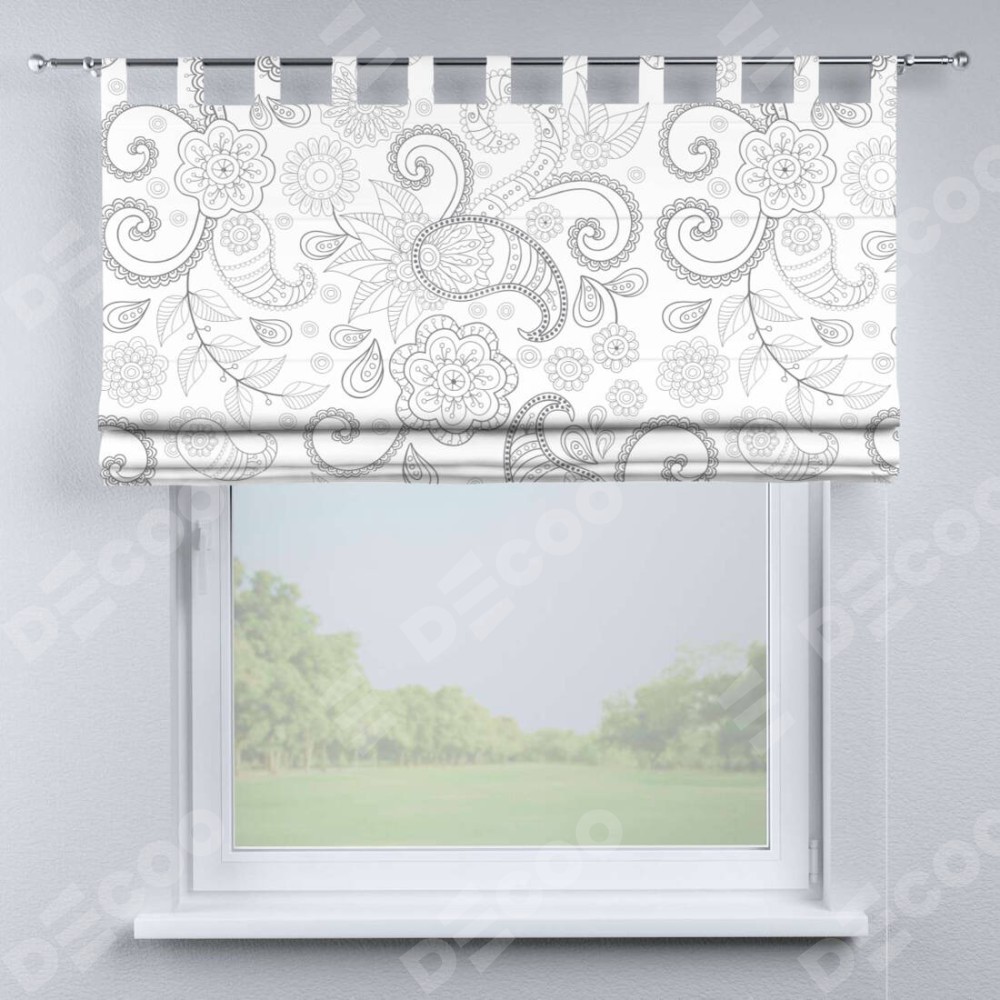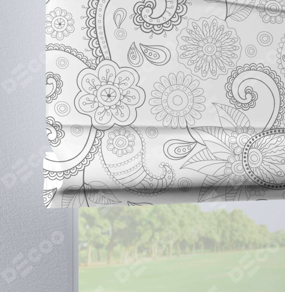 Римская штора производителя «Cortin», используется для проёма, пошита из ткани блэкаут с нанесением сублимационной печати «Изысканный пейсли». Данная модель пошита на петлях, комплектуется на выбор круглым карнизом и подходит для монтажа на стену. Римская штора на петлях имеет простую систему регулировки высоты, отличительным преимуществом данной модели является простой способ монтажа. Достаточно повесить ее на трубу и штора готова!