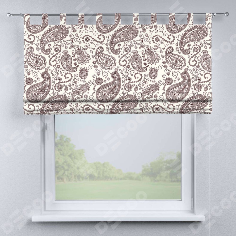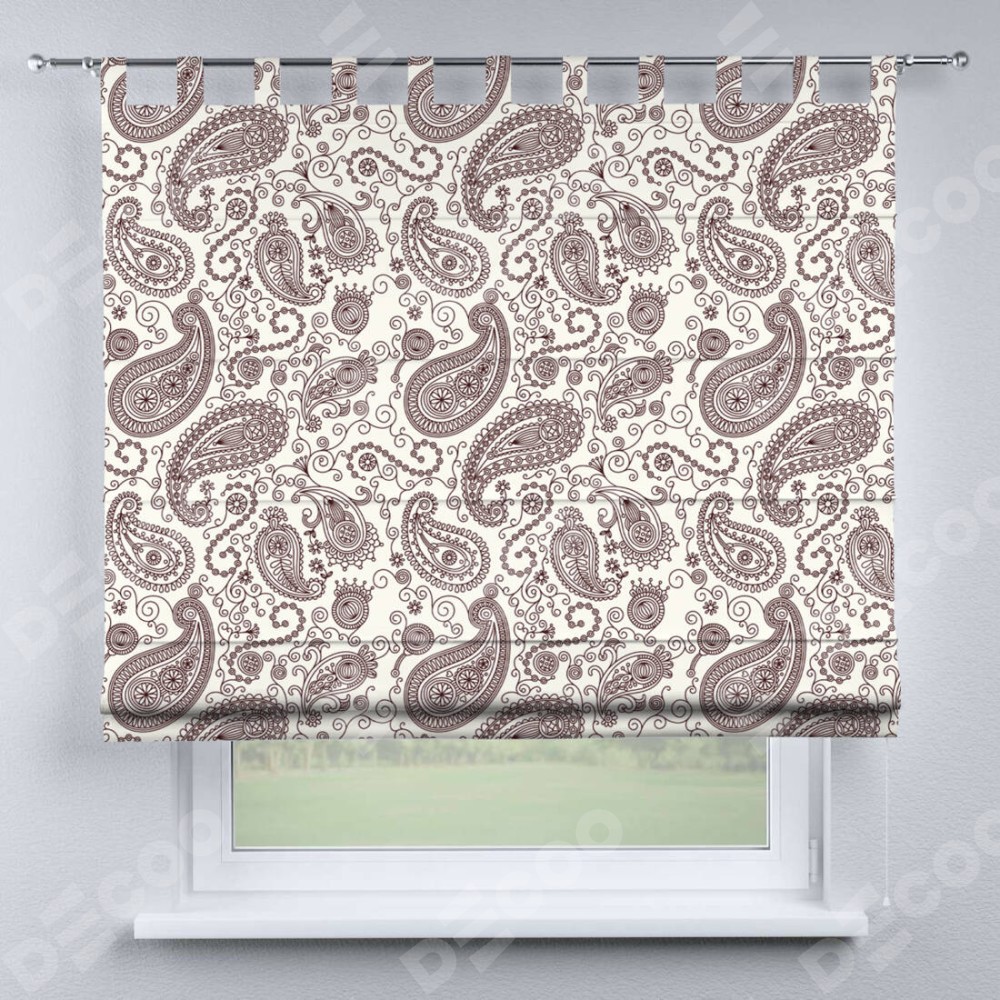 Римская штора производителя «Cortin», используется для проёма, пошита из ткани блэкаут с нанесением сублимационной печати «Индийский узор». Данная модель пошита на петлях, комплектуется на выбор круглым карнизом и подходит для монтажа на стену. Римская штора на петлях имеет простую систему регулировки высоты, отличительным преимуществом данной модели является простой способ монтажа. Достаточно повесить ее на трубу и штора готова!