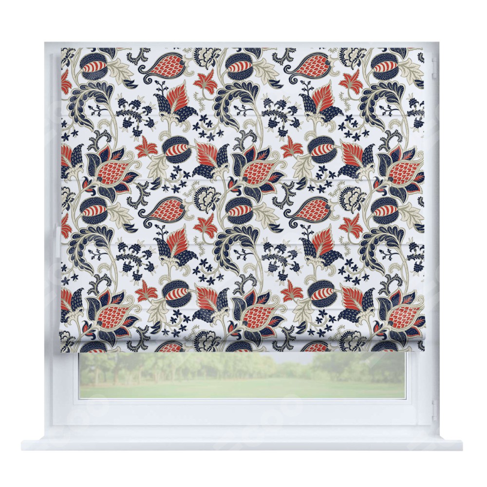 Римская штора производителя «Cortin», устанавливается на створку окна, пошита из ткани блэкаут с нанесением сублимационной печати «Пёстрые цветы». Штора шьётся по индивидуальным размерам, для данного типа римской шторы возможная ширина от 35 до 150 см., высота до 250 см.