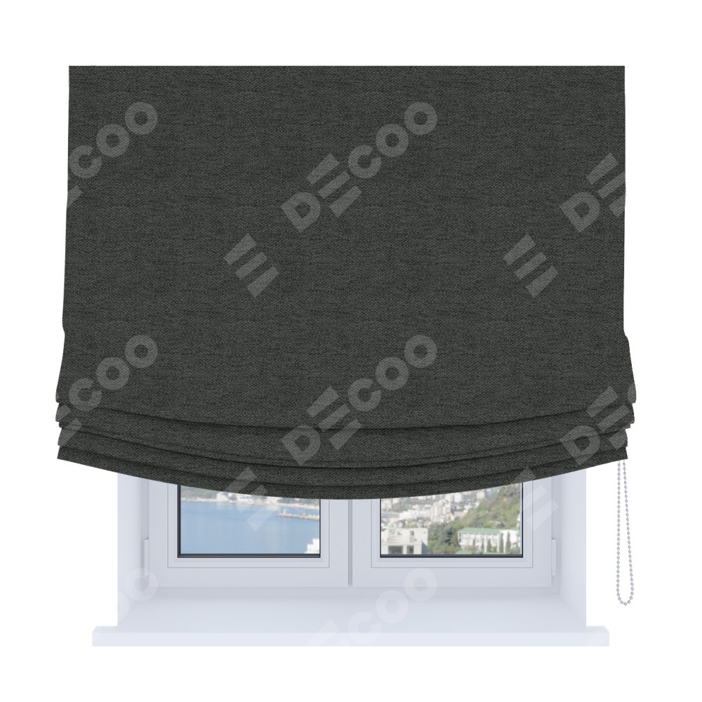 Римская штора Soft производителя «Cortin», используется для проёма, пошита из ткани стиф димаут графит, артикул ткани 44026. Имеет универсальный механизм и подходит для монтажа: на потолок, на стену и в нишу. В отличие от стандартных римских штор, римская штора Soft не имеет горизонтальных вставок и нижнего отвеса. Это позволяет ткани произвольно драпироваться в свободные мягкие складки.