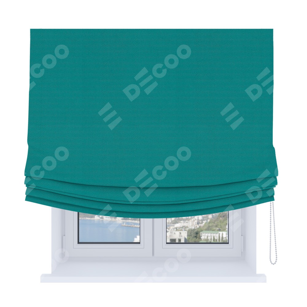 Римская штора Soft с мягкими складками, ткань блэкаут однотонный бирюзовый