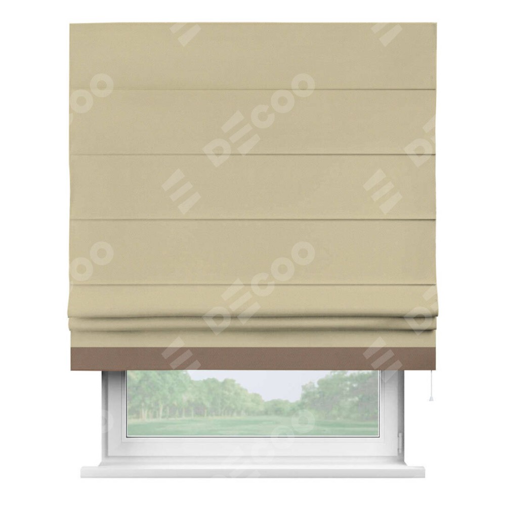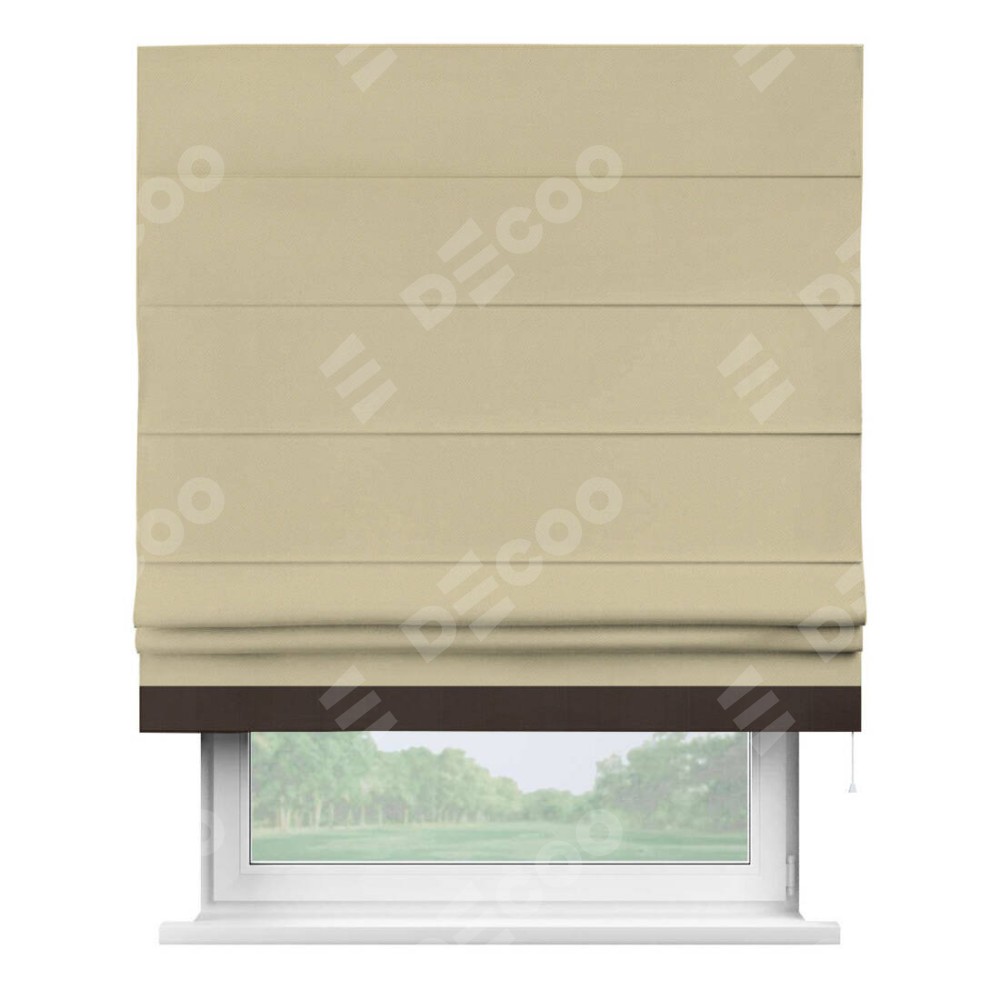 Римская штора производителя «Cortin», используется для проёма, пошита из ткани блэкаут однотонный кофейный, артикул ткани 13130. Отделка шторы кантом «Джестер», ткань для канта используется из блэкаута однотонного разной расцветки на выбор. Имеет универсальный механизм и подходит для монтажа: на потолок, на стену и в нишу.