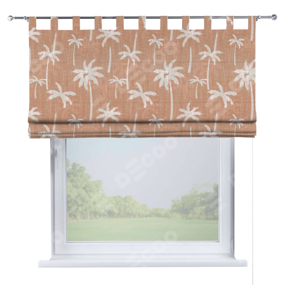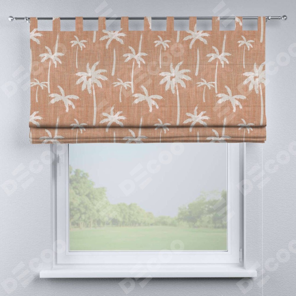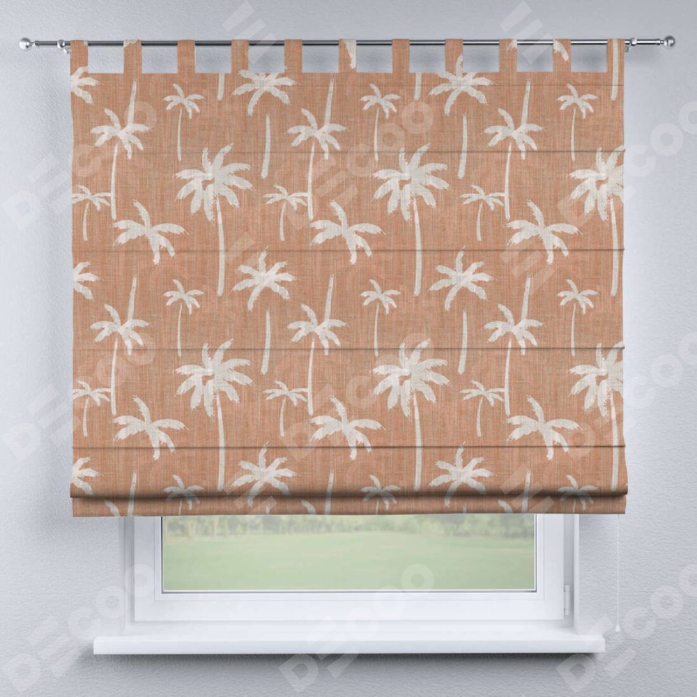 Римская штора производителя «Cortin», используется для проёма, пошита из ткани блэкаут с нанесением сублимационной печати «Пальмы на закате». Данная модель пошита на петлях, комплектуется на выбор круглым карнизом и подходит для монтажа на стену. Римская штора на петлях имеет простую систему регулировки высоты, отличительным преимуществом данной модели является простой способ монтажа. Достаточно повесить ее на трубу и штора готова!
