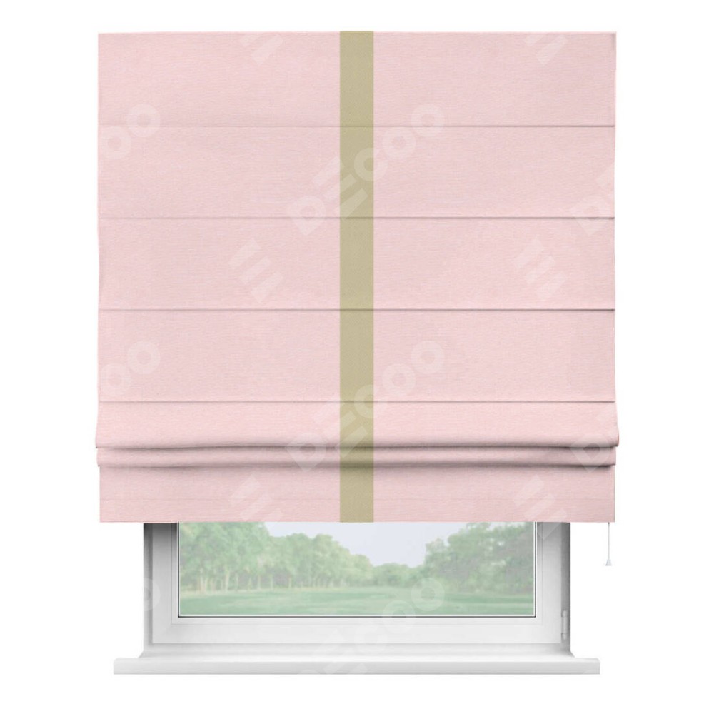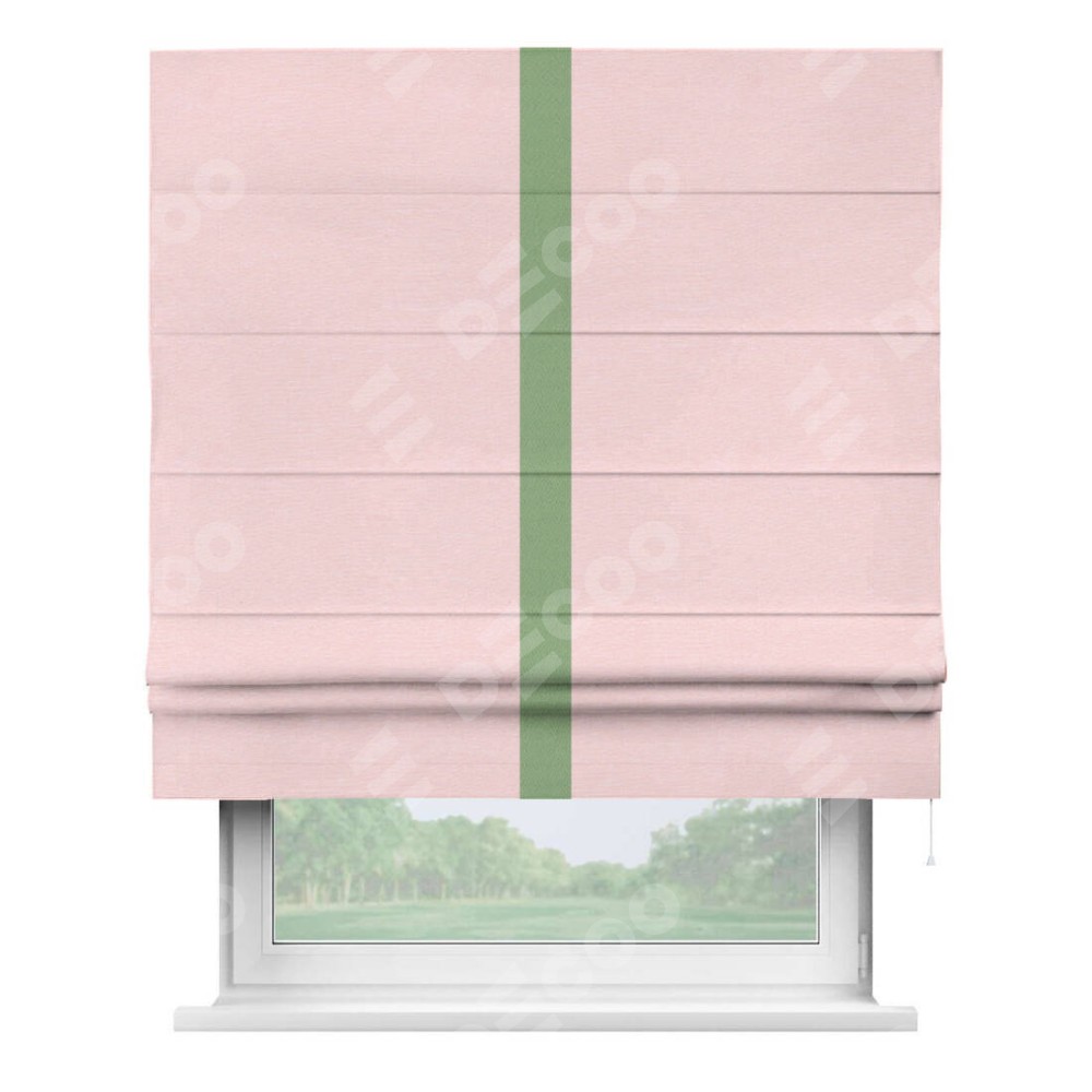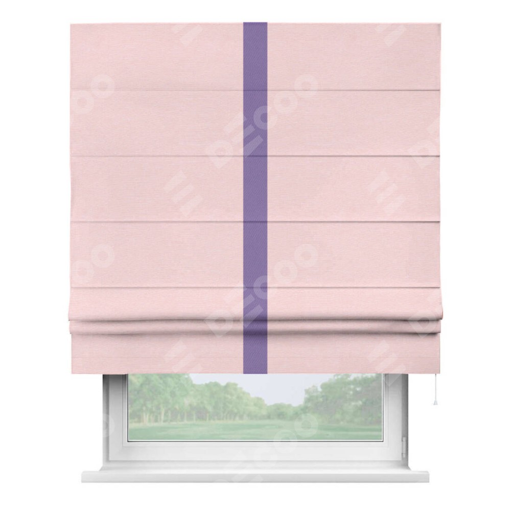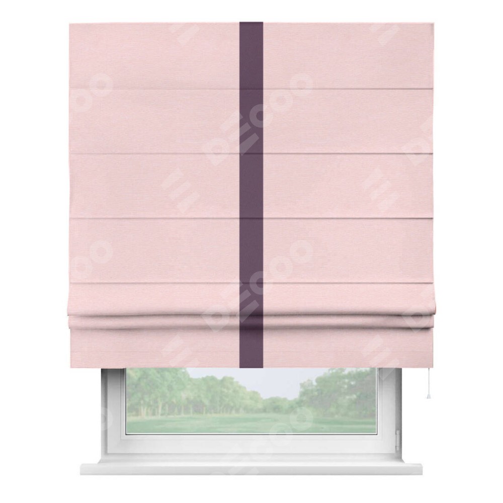 Римская штора производителя «Cortin», используется для проёма, пошита из ткани блэкаут однотонный розовый, артикул ткани 83046. Отделка шторы кантом «Хайвей», ткань для канта используется из блэкаута однотонного разной расцветки на выбор. Имеет универсальный механизм и подходит для монтажа: на потолок, на стену и в нишу.