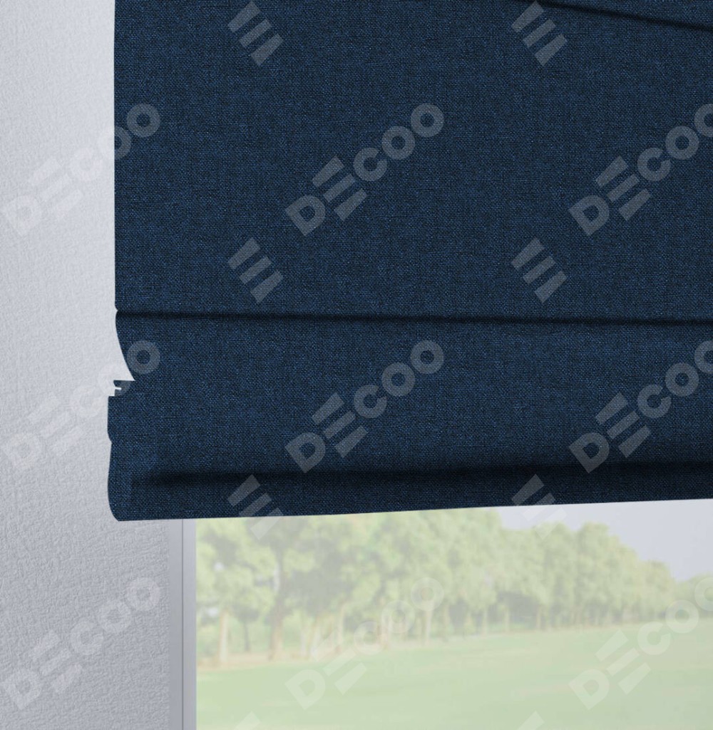 Римская штора на петлях «Кортин», ткань лён кашемир тёмно-синий