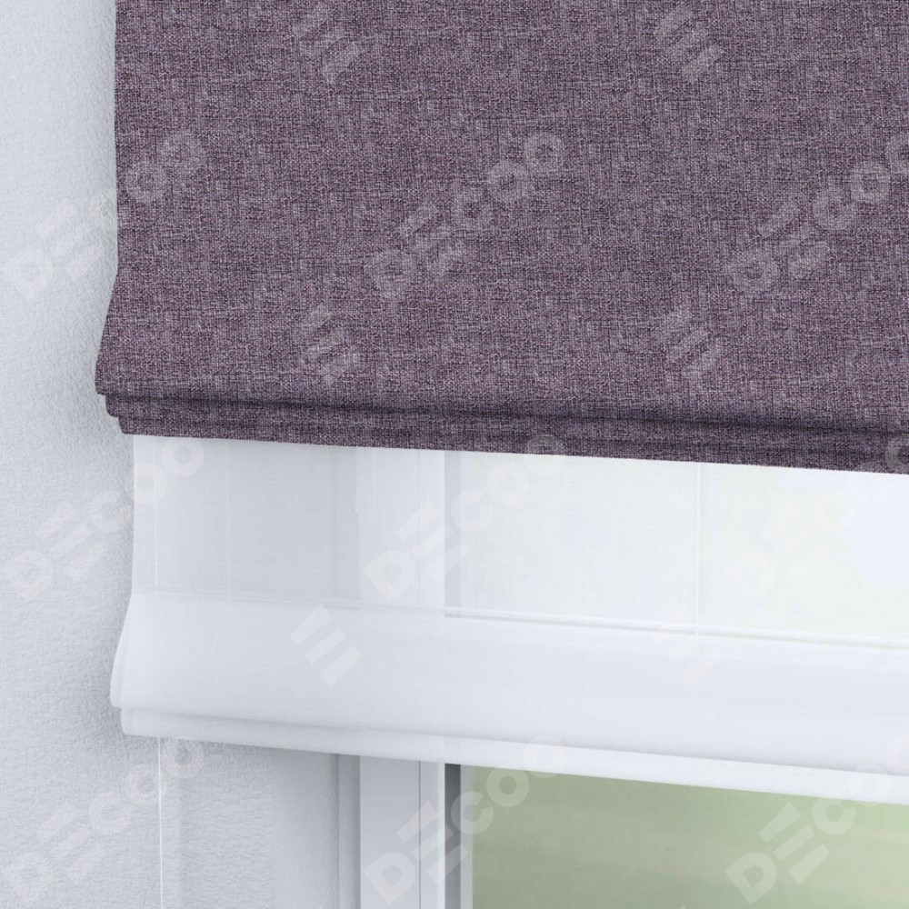Римская штора день-ночь производителя «Cortin», используется для проёма, пошита из двух полотен, с лицевой стороны лён кашемир фиолетовый артикул 17211, вторая ткань тюль (по стандарту комплектуется тюль белого цвета артикул V-01). Имеет универсальный механизм и подходит для монтажа: на потолок, на стену и в нишу.