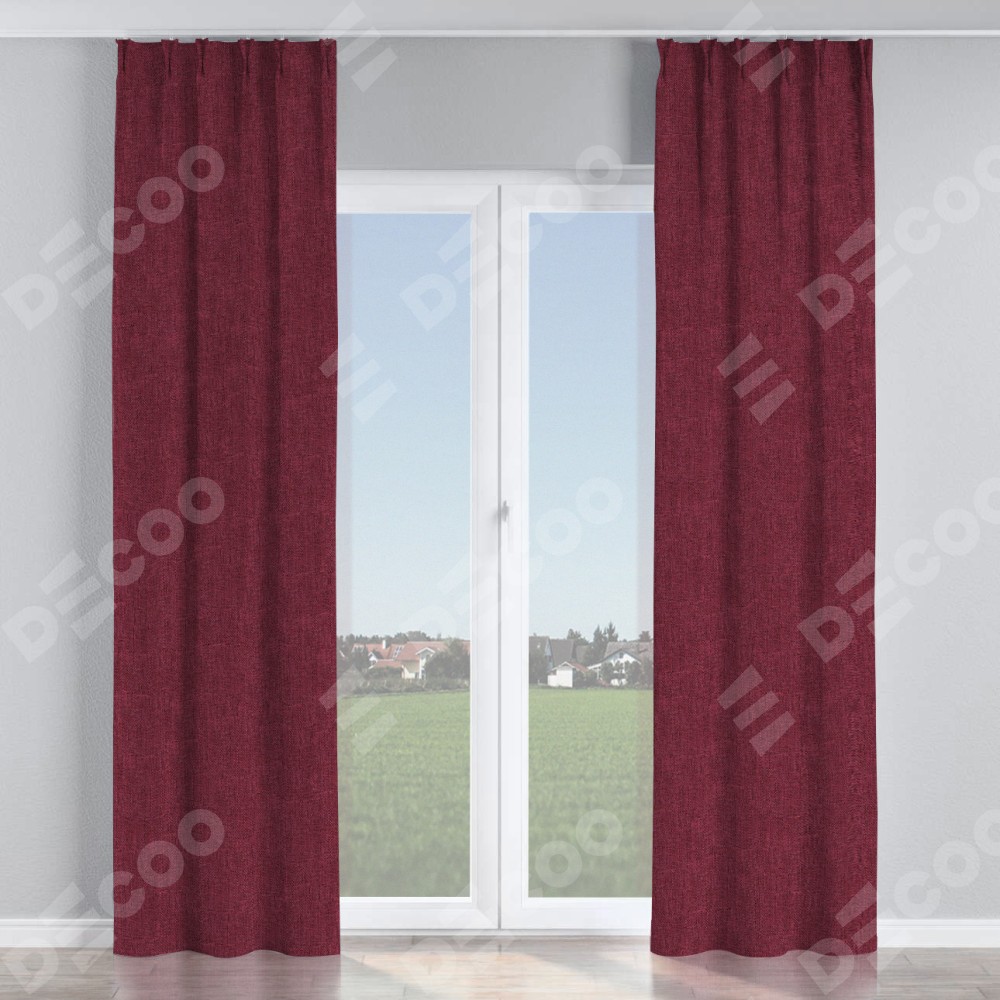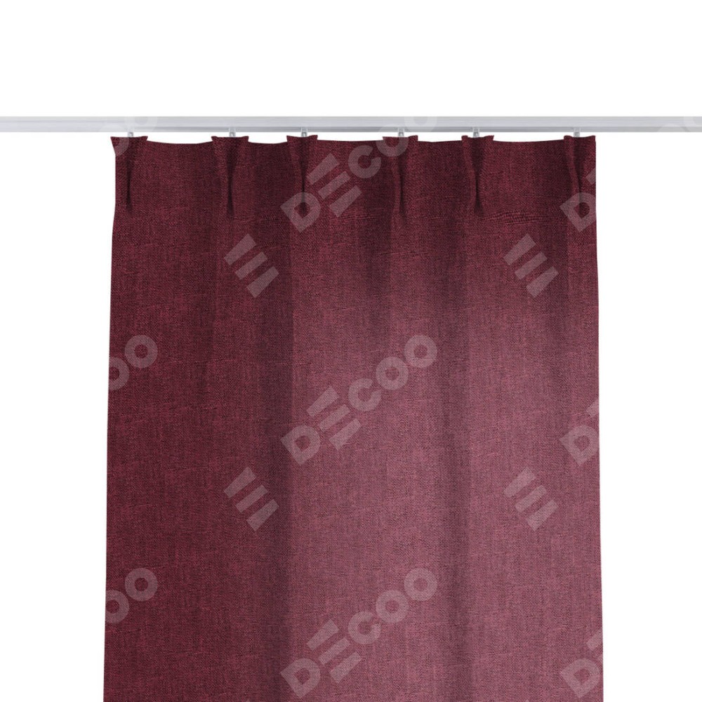 Комплект прямых штор, от производителя «Cortin», пошиты из ткани лён кашемир бордовый, артикул ткани 21621. С изнаночной стороны в верхней части штор пристрачивается шторная лента с декоративными складками «Кустик». Для создания элегантных складок прямые шторы шьются по стандарту с коэффициентом 1:2 (на 100 см. ширины проёма 200 см. ширины ткани).
