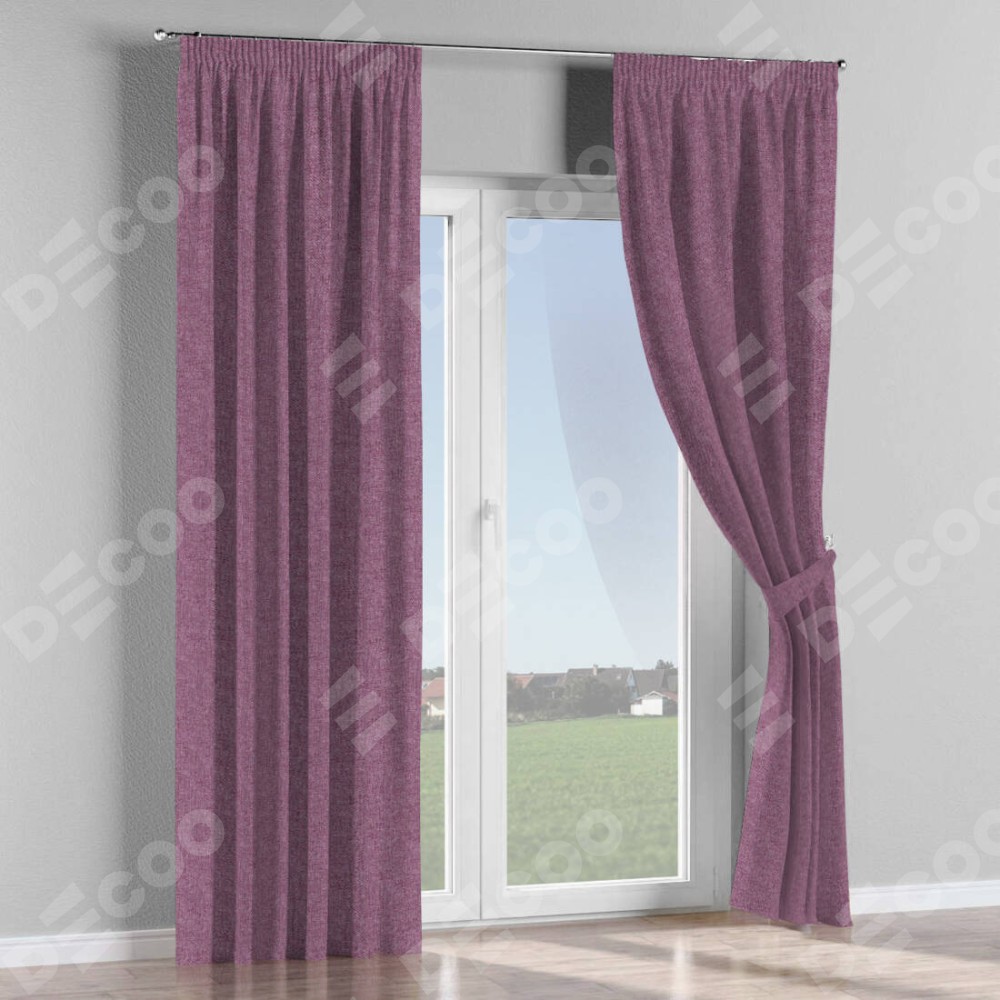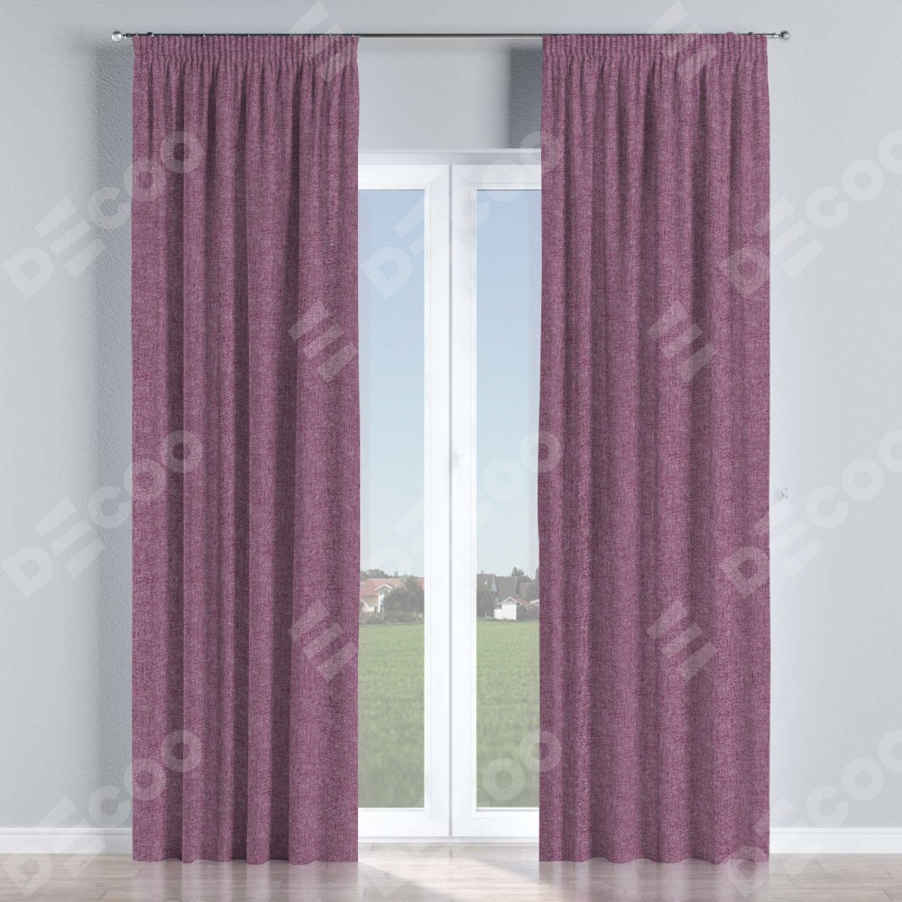Комплект прямых штор, от производителя «Cortin», пошиты из ткани лён кашемир сиреневый, артикул ткани 21620. С изнаночной стороны в верхней части штор пристрачивается шторная лента с декоративными складками «Карандаш». Для создания элегантных складок прямые шторы шьются по стандарту с коэффициентом 1:2 (на 100 см. ширины проёма 200 см. ширины ткани).