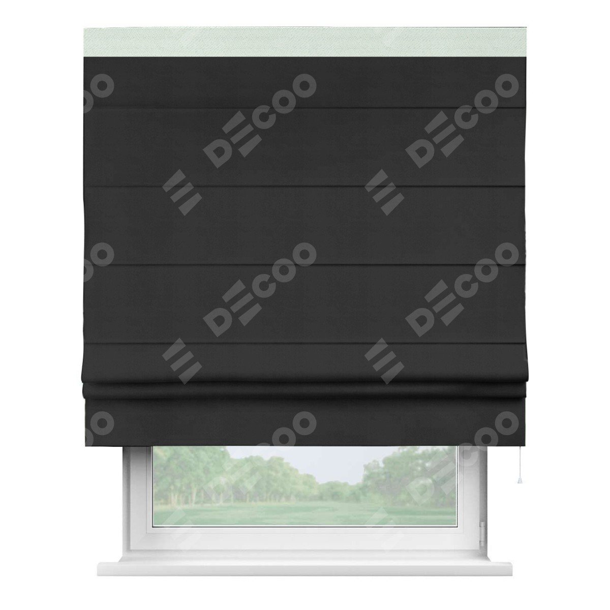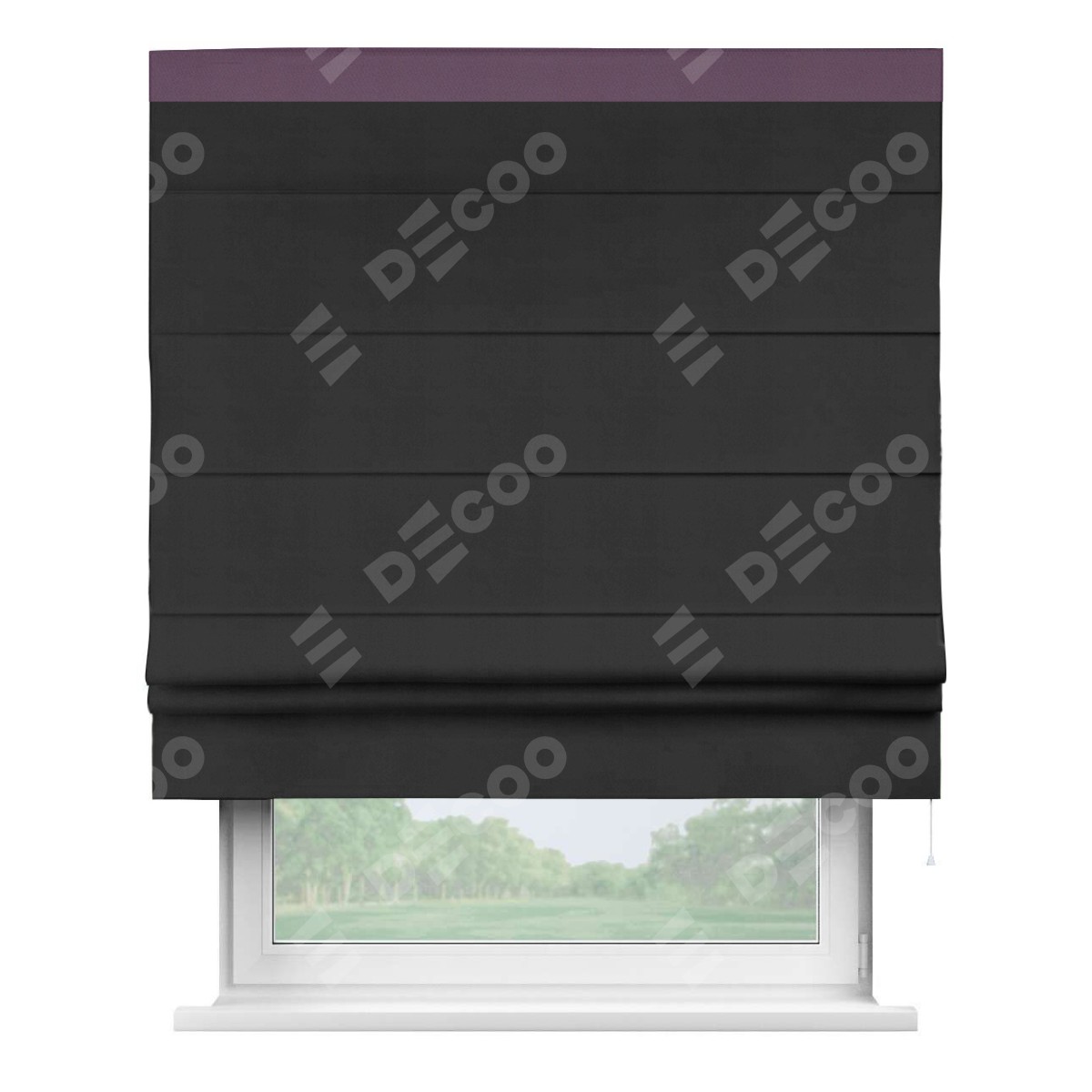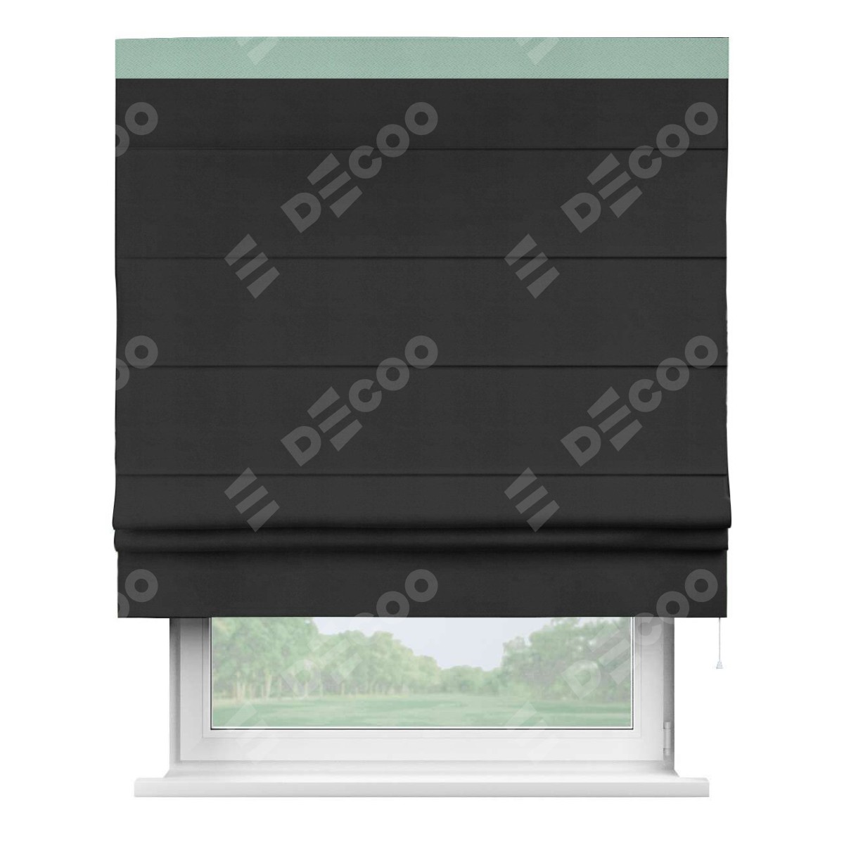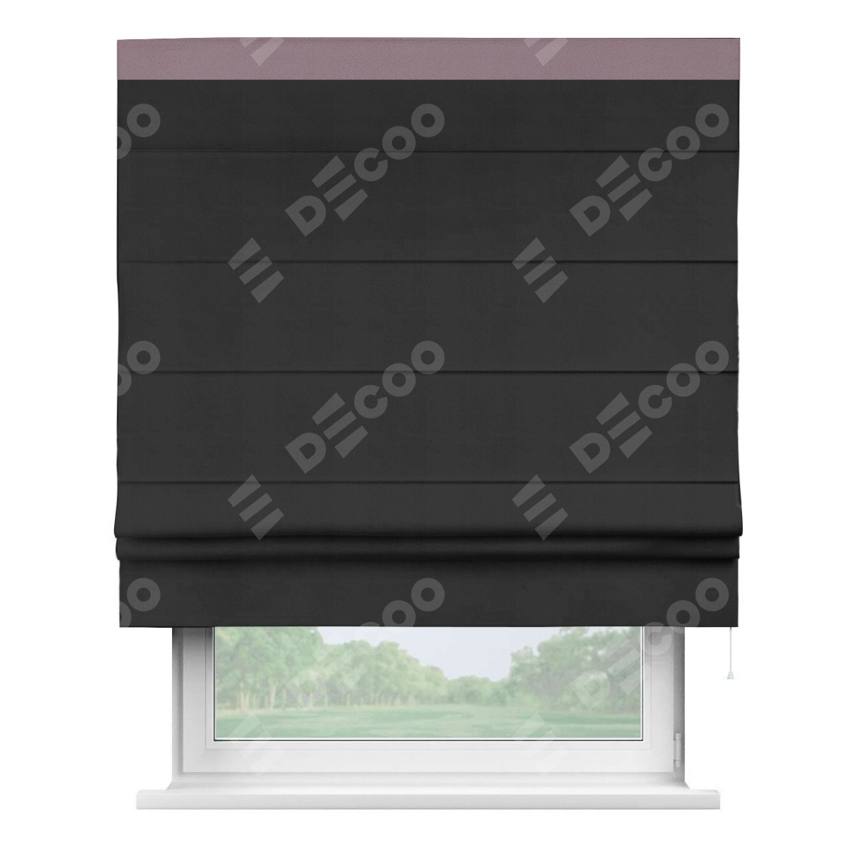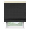 Римская штора производителя «Cortin», используется для проёма, пошита из ткани блэкаут однотонный черный, артикул ткани 79904. Отделка шторы кантом «Кинг», ткань для канта используется из блэкаута однотонного разной расцветки на выбор. Имеет универсальный механизм и подходит для монтажа: на потолок, на стену и в нишу.