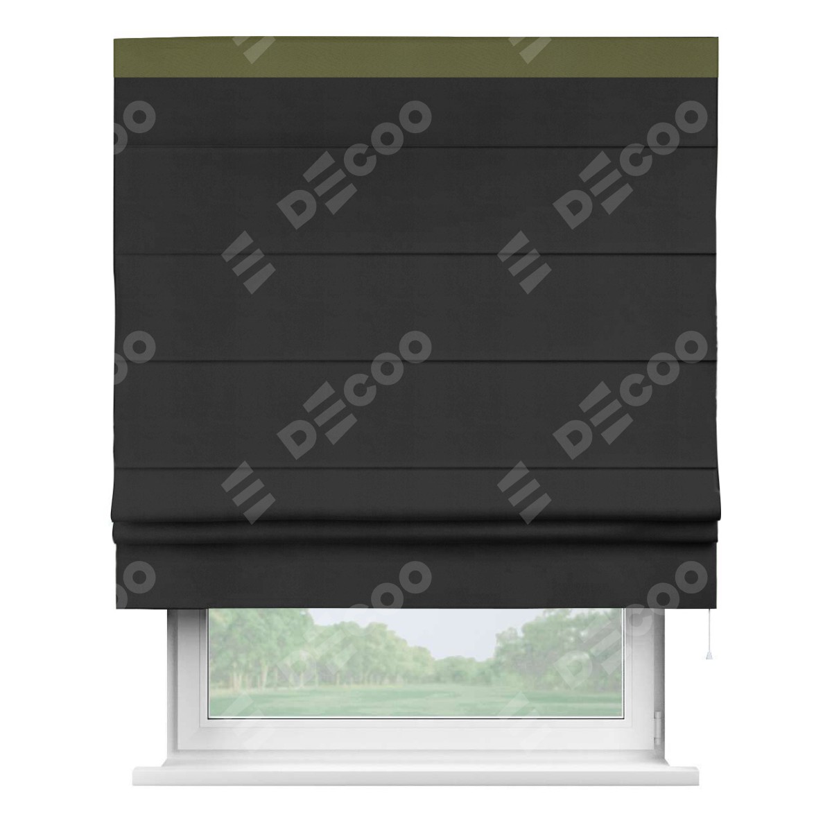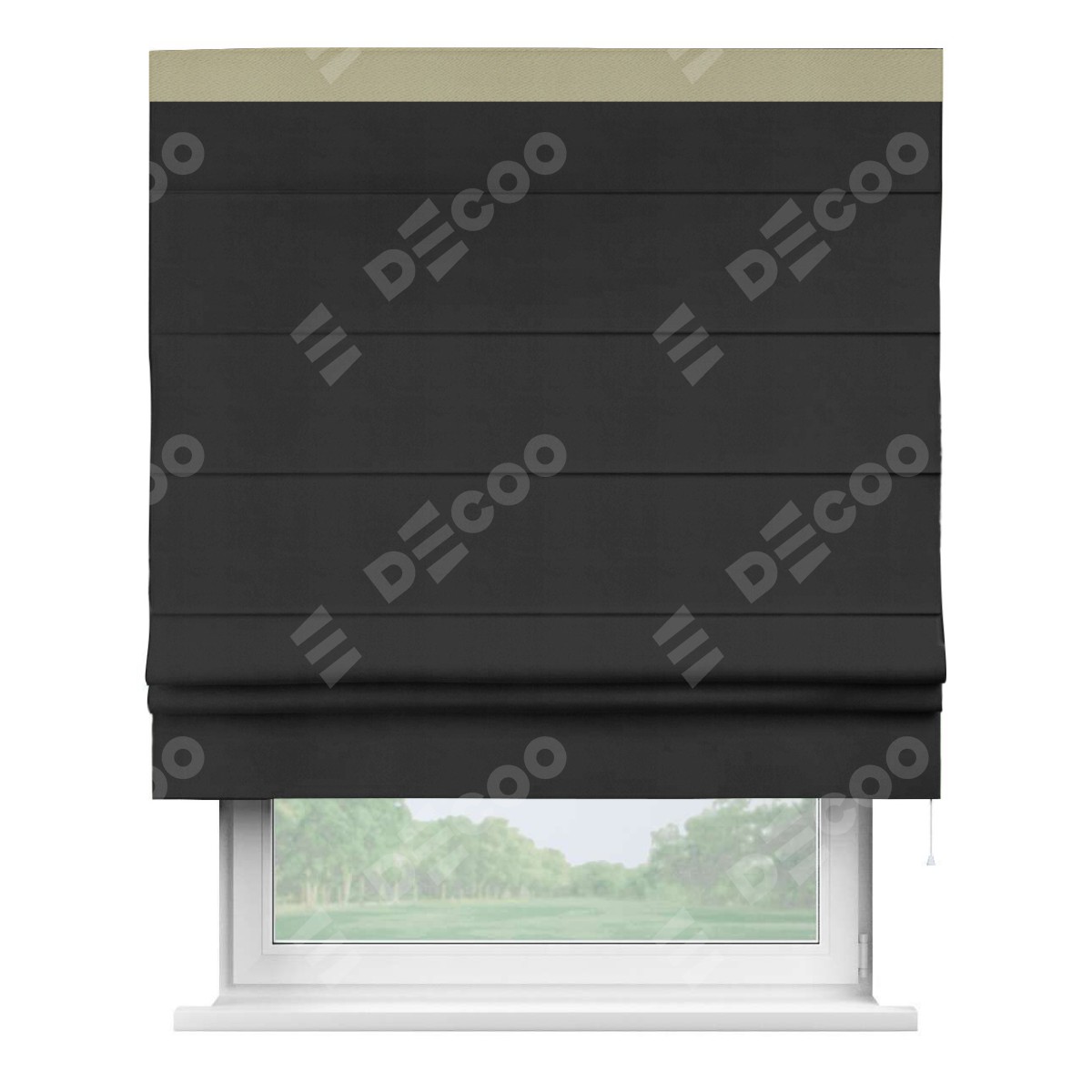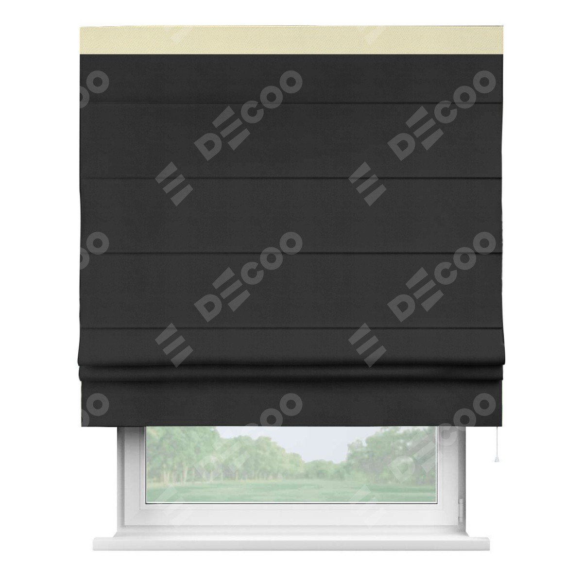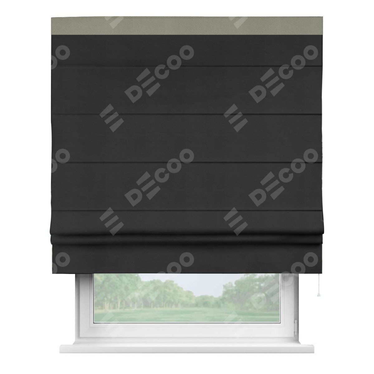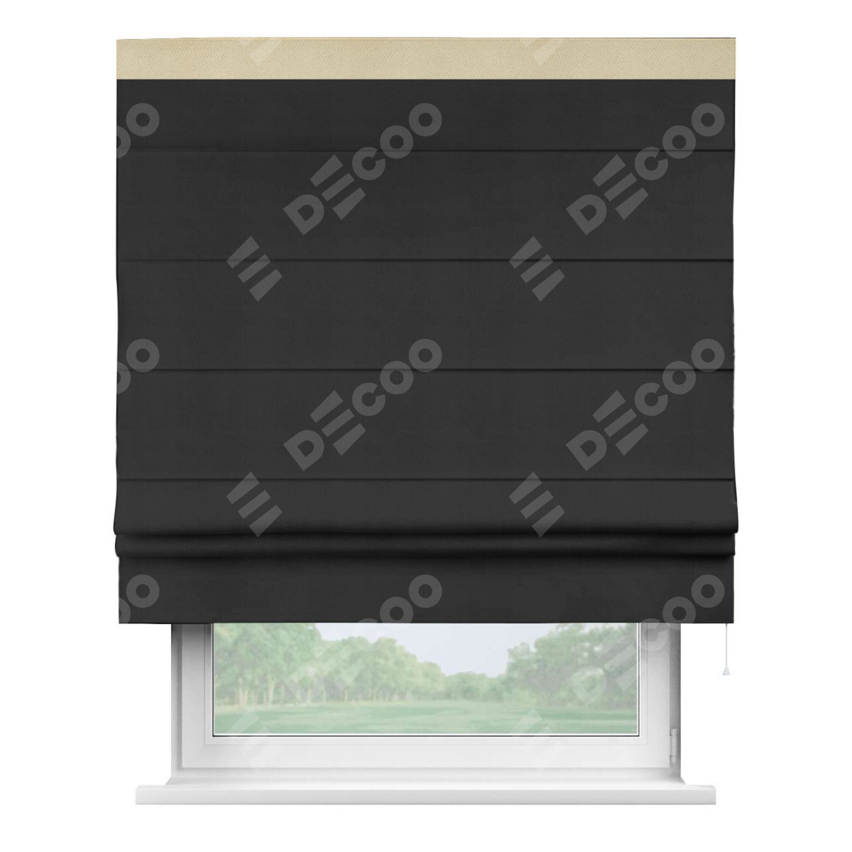 Римская штора производителя «Cortin», используется для проёма, пошита из ткани блэкаут однотонный черный, артикул ткани 79904. Отделка шторы кантом «Кинг», ткань для канта используется из блэкаута однотонного разной расцветки на выбор. Имеет универсальный механизм и подходит для монтажа: на потолок, на стену и в нишу.