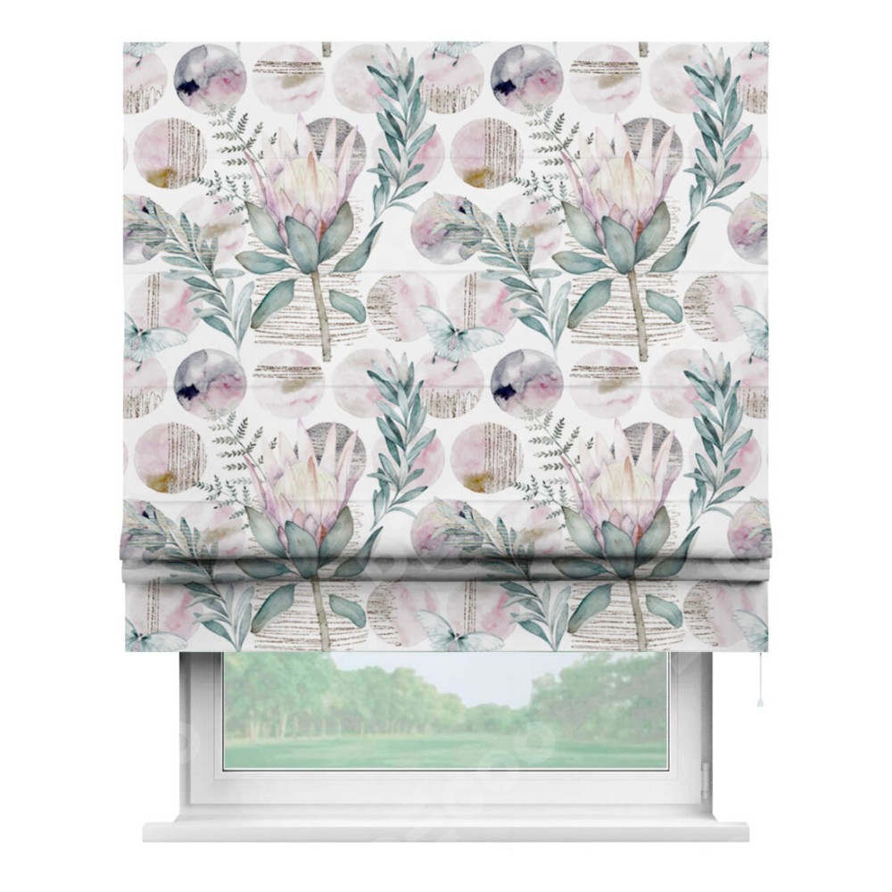 Римская штора производителя «Cortin», используется для проёма, пошита из ткани блэкаут с нанесением сублимационной печати «Розовый лотос». Имеет универсальный механизм и подходит для монтажа: на потолок, на стену и в нишу.