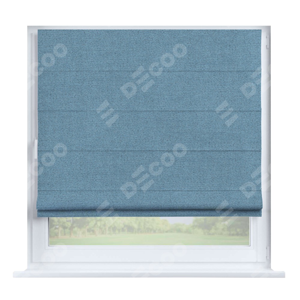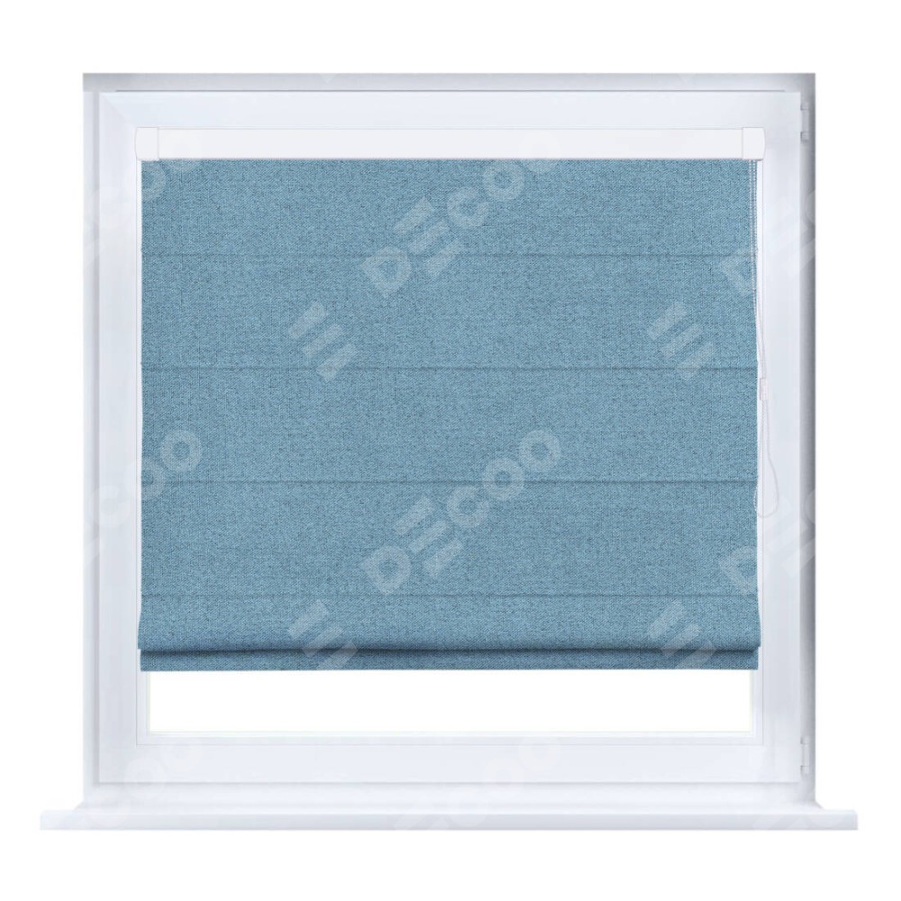 Римская штора производителя «Cortin», устанавливается на створку окна, пошита из ткани лён блэкаут голубой, артикул 69574. Штора шьётся по индивидуальным размерам, для данного типа римской шторы возможная ширина от 35 до 150 см., высота до 250 см.