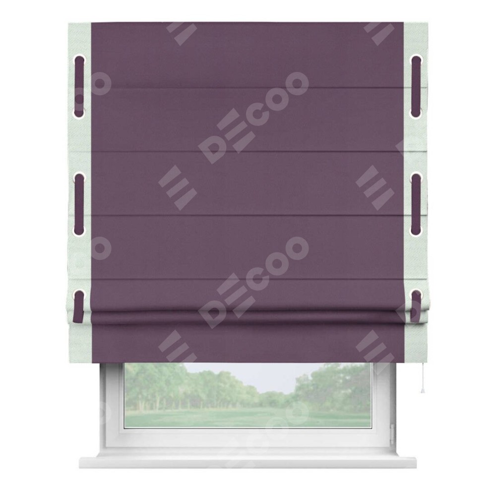 Римская штора производителя «Cortin», используется для проёма, пошита из ткани блэкаут однотонный фуксия, артикул ткани 88303. Отделка шторы кантом «Стрим Дуо» на кантах расположены люверсы с пояском, ткань для канта используется из блэкаута однотонного разной расцветки на выбор. Ткань для пояска обычно используется из основной ткани шторы, а так же можно сделать из любой расцветки по желанию. Имеет универсальный механизм и подходит для монтажа: на потолок, на стену и в нишу.