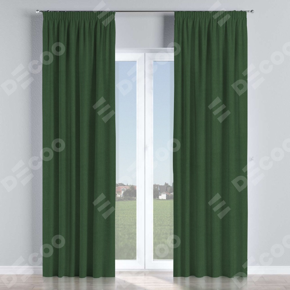 Комплект штор на тесьме «Карандаш», лён блэкаут зелёный