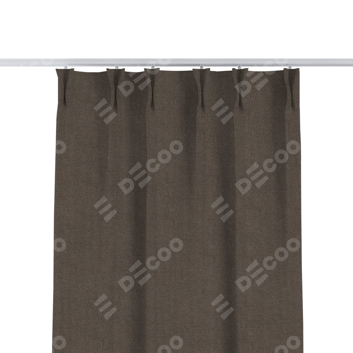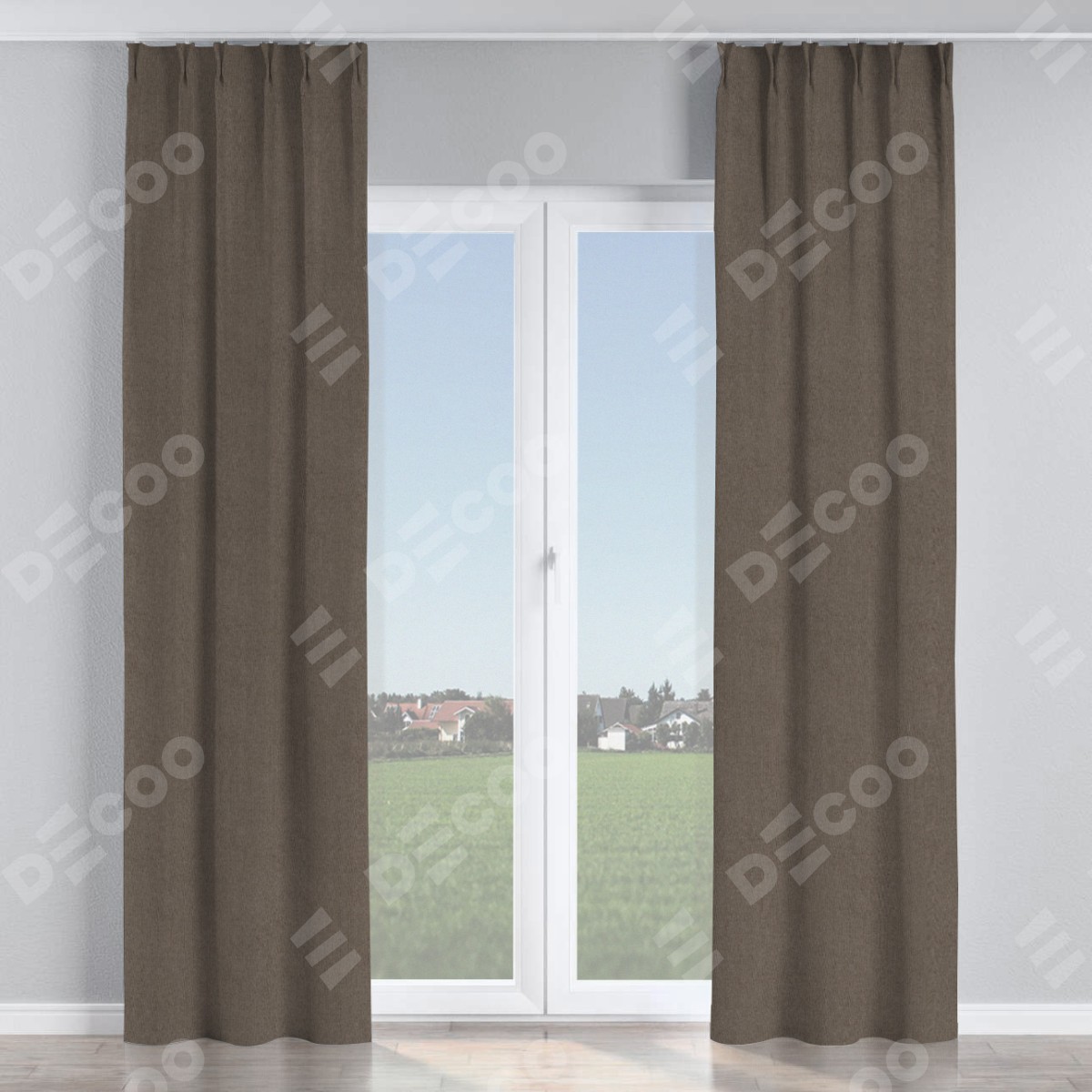 Комплект прямых штор, от производителя «Cortin», пошиты из ткани лён блэкаут коричневый, артикул ткани 69383. С изнаночной стороны в верхней части штор пристрачивается шторная лента с декоративными складками «Кустик». Для создания элегантных складок прямые шторы шьются по стандарту с коэффициентом 1:2 (на 100 см. ширины проёма 200 см. ширины ткани).