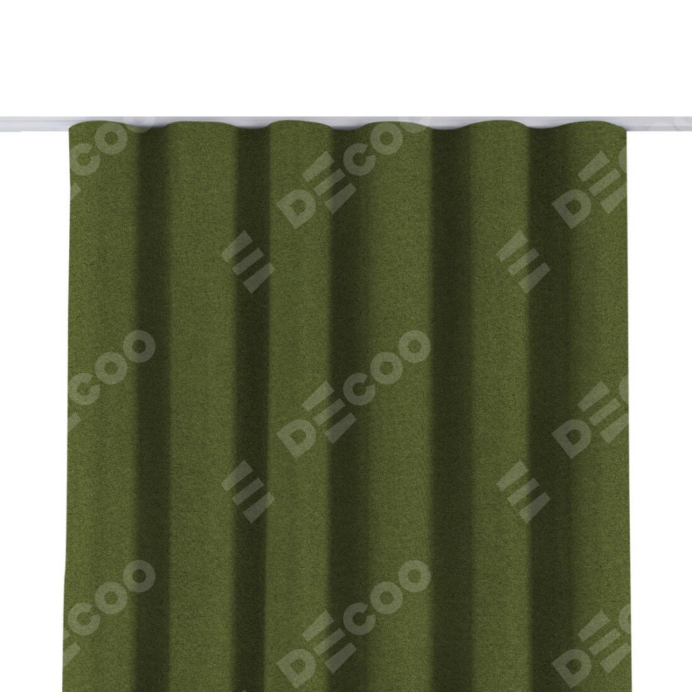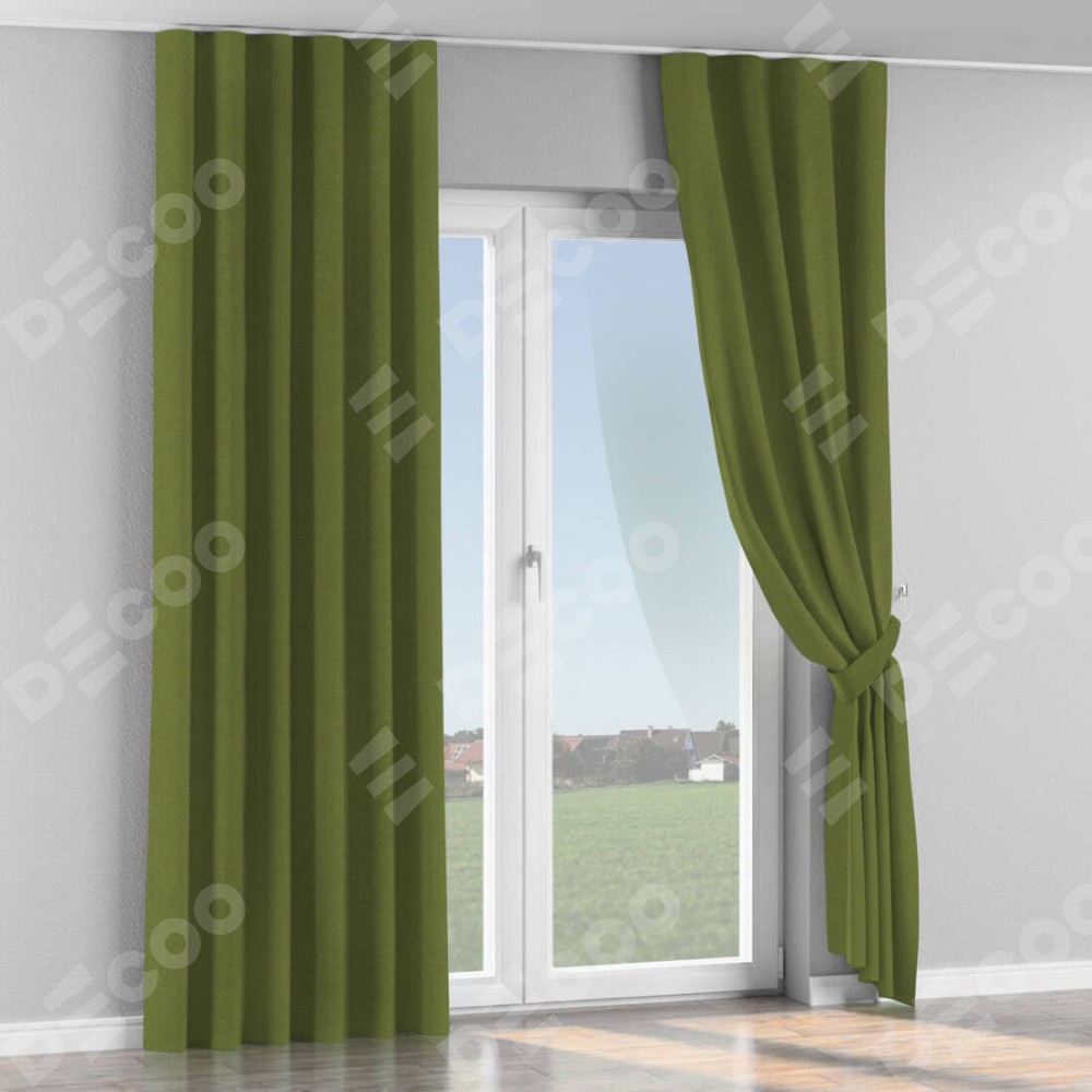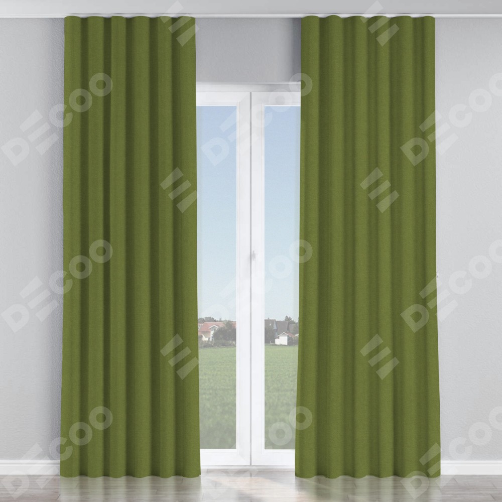 Комплект прямых штор, от производителя «Cortin», пошиты из ткани лён блэкаут оливковый, артикул ткани 69516. С изнаночной стороны в верхней части штор пристрачивается шторная лента с декоративными складками «Волна». Для создания элегантных складок прямые шторы шьются по стандарту с коэффициентом 1:2 (на 100 см. ширины проёма 200 см. ширины ткани).