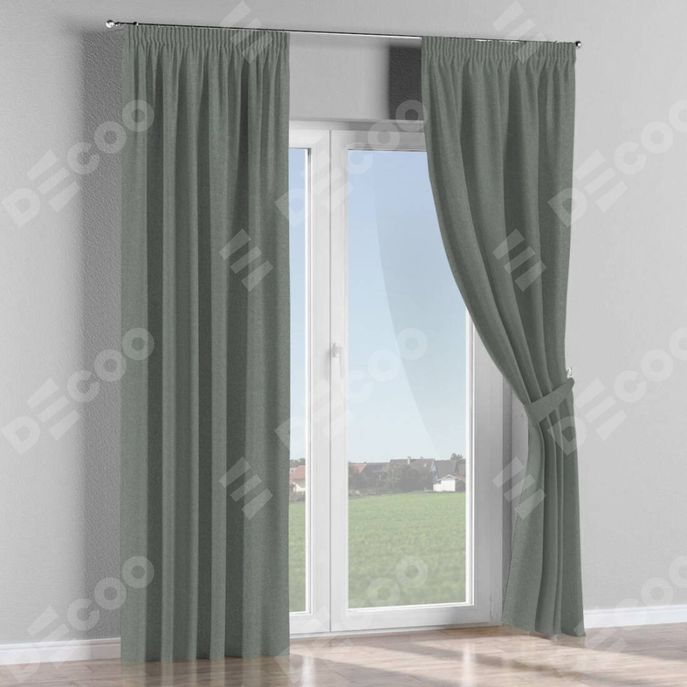 Комплект штор на тесьме «Карандаш», лён блэкаут серый