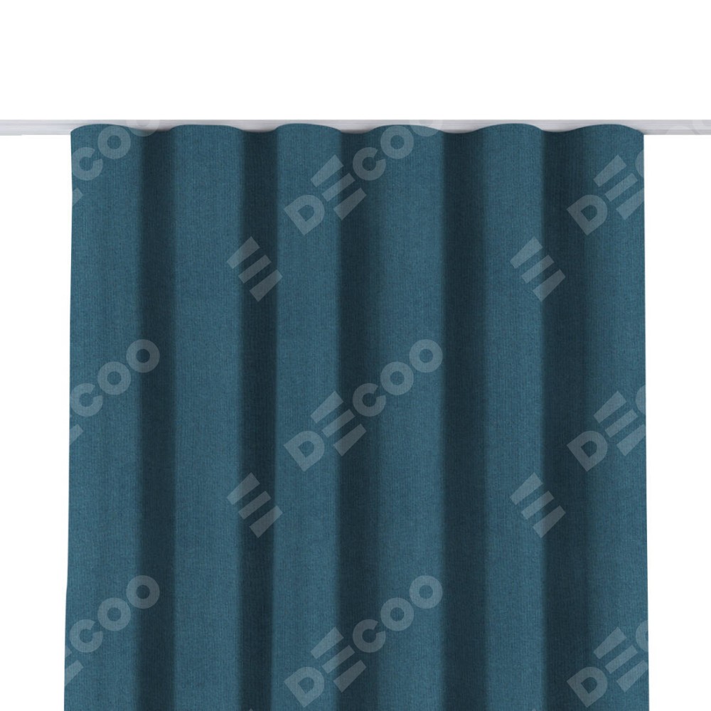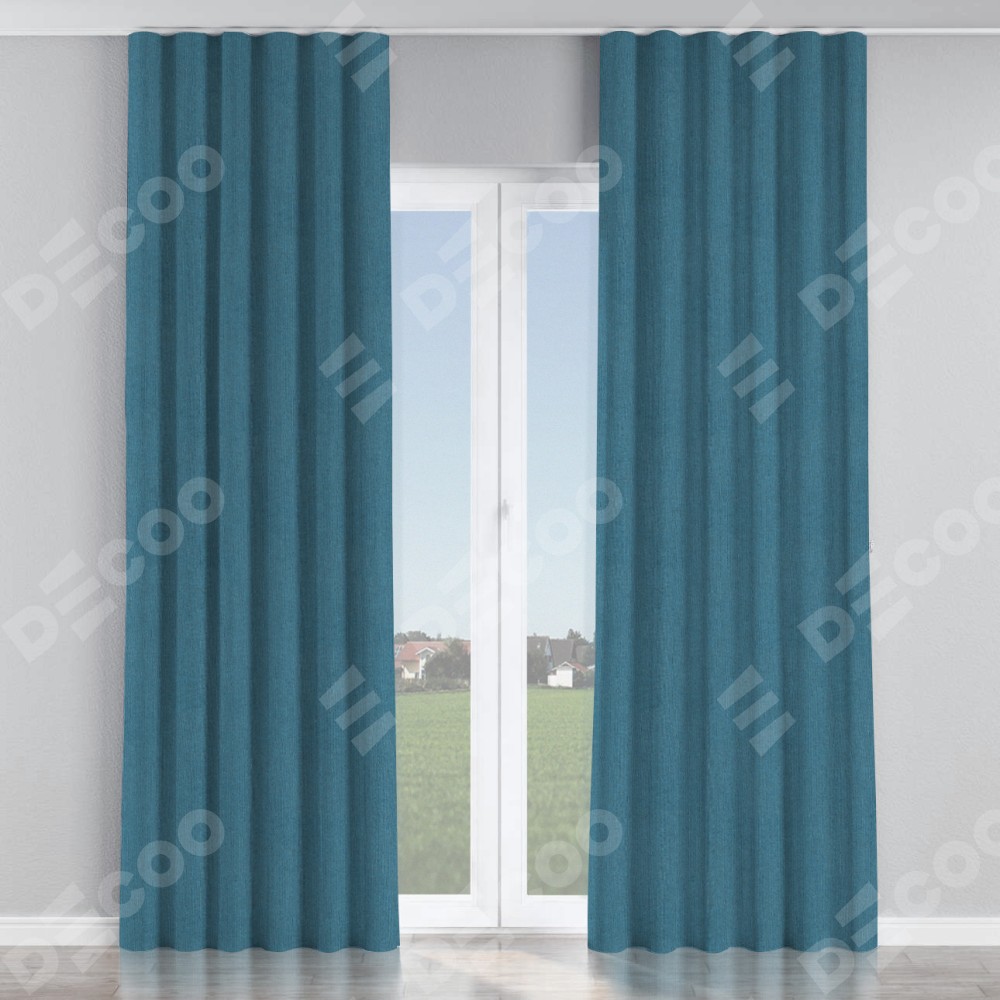 Комплект прямых штор, от производителя «Cortin», пошиты из ткани лён блэкаут синий, артикул ткани 69528. С изнаночной стороны в верхней части штор пристрачивается шторная лента с декоративными складками «Волна». Для создания элегантных складок прямые шторы шьются по стандарту с коэффициентом 1:2 (на 100 см. ширины проёма 200 см. ширины ткани).