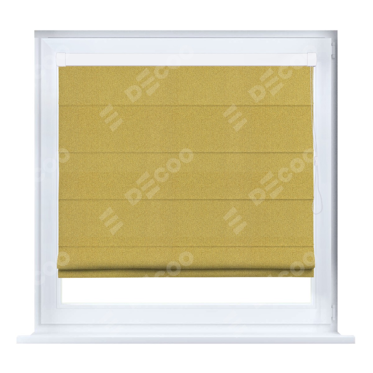 Римская штора кассетного типа, производителя «Cortin», устанавливается только на пластиковые окна и прилегает к стеклопакету, пошита из ткани твид блэкаут пыльная горчица, артикул 21588.