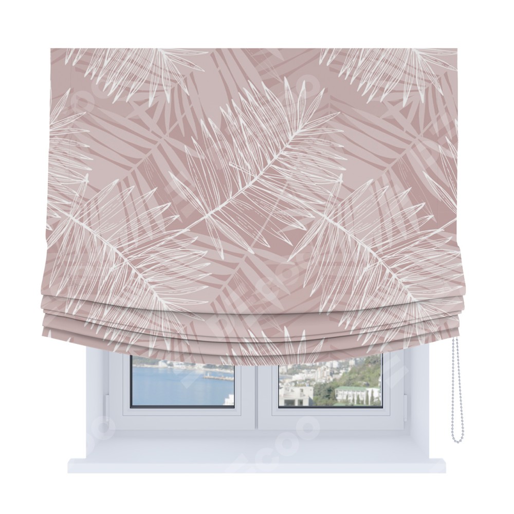 Римская штора Soft производителя «Cortin», используется для проёма, пошита из ткани блэкаут с нанесением сублимационной печати «Бежевые тропики». Имеет универсальный механизм и подходит для монтажа: на потолок, на стену и в нишу. В отличие от стандартных римских штор, римская штора Soft не имеет горизонтальных вставок и нижнего отвеса. Это позволяет ткани произвольно драпироваться в свободные мягкие складки.