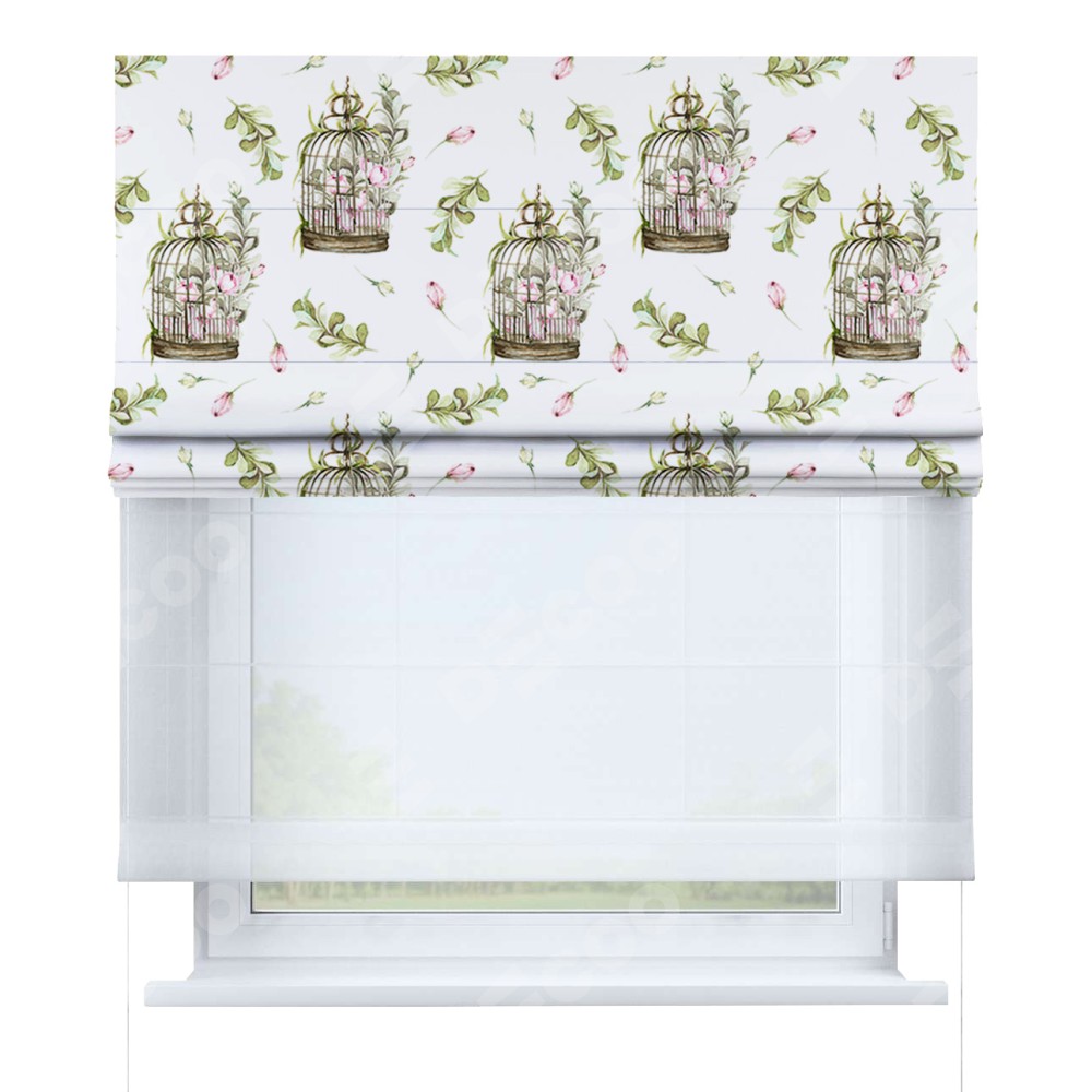 Римская штора день-ночь производителя «Cortin», используется для проёма, пошита из двух полотен, с лицевой блэкаут с нанесением сублимационной печати «Летний прованс», вторая ткань тюль (по стандарту комплектуется тюль белого цвета артикул V-01). Имеет универсальный механизм и подходит для монтажа: на потолок, на стену и в нишу.