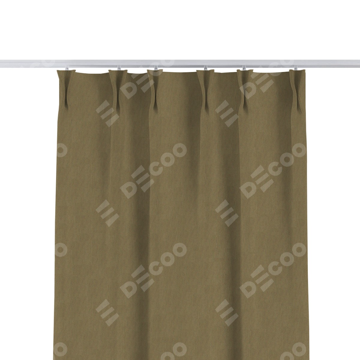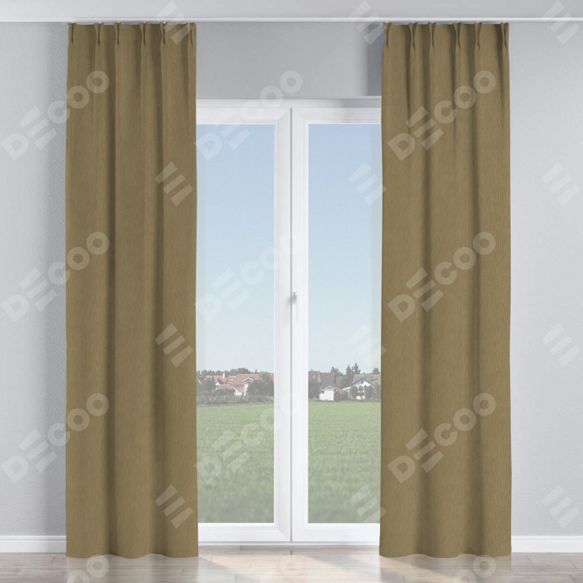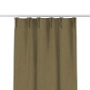 Комплект прямых штор, от производителя «Cortin», пошиты из ткани блэкаут однотонный бежево-золотой, артикул ткани 12095−2. С изнаночной стороны в верхней части штор пристрачивается шторная лента с декоративными складками «Кустик». Для создания элегантных складок прямые шторы шьются по стандарту с коэффициентом 1:2 (на 100 см. ширины проёма 200 см. ширины ткани).