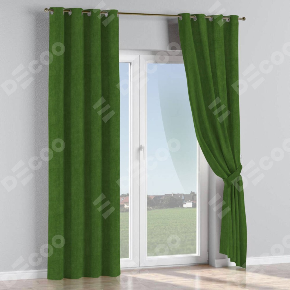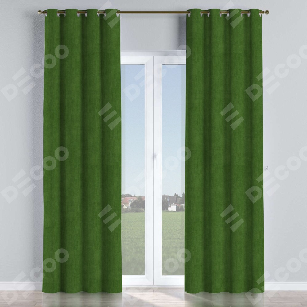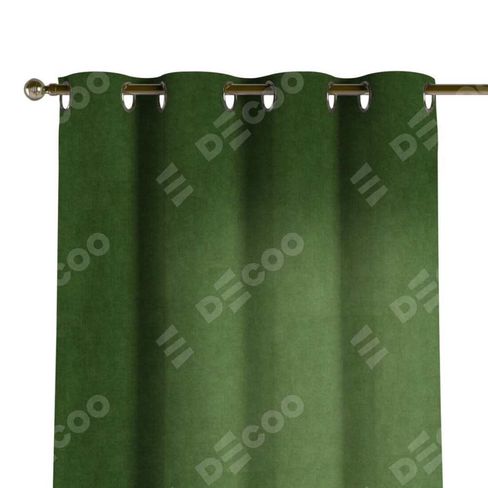 Комплект прямых штор, от производителя «Cortin», пошиты из ткани вельвет тёмно-салатовый, артикул ткани 33805. Данная модель пошита на люверсах, комплектуется на выбор круглым карнизом и подходит для монтажа на стену или потолок. Прямые шторы на люверсах шьются по стандарту с коэффициентом 1/2 (на 100 см. ширины проёма 200 см. ширины ткани), отличительным преимуществом данной модели является простой способ монтажа. Достаточно повесить ее на трубу и штора готова!