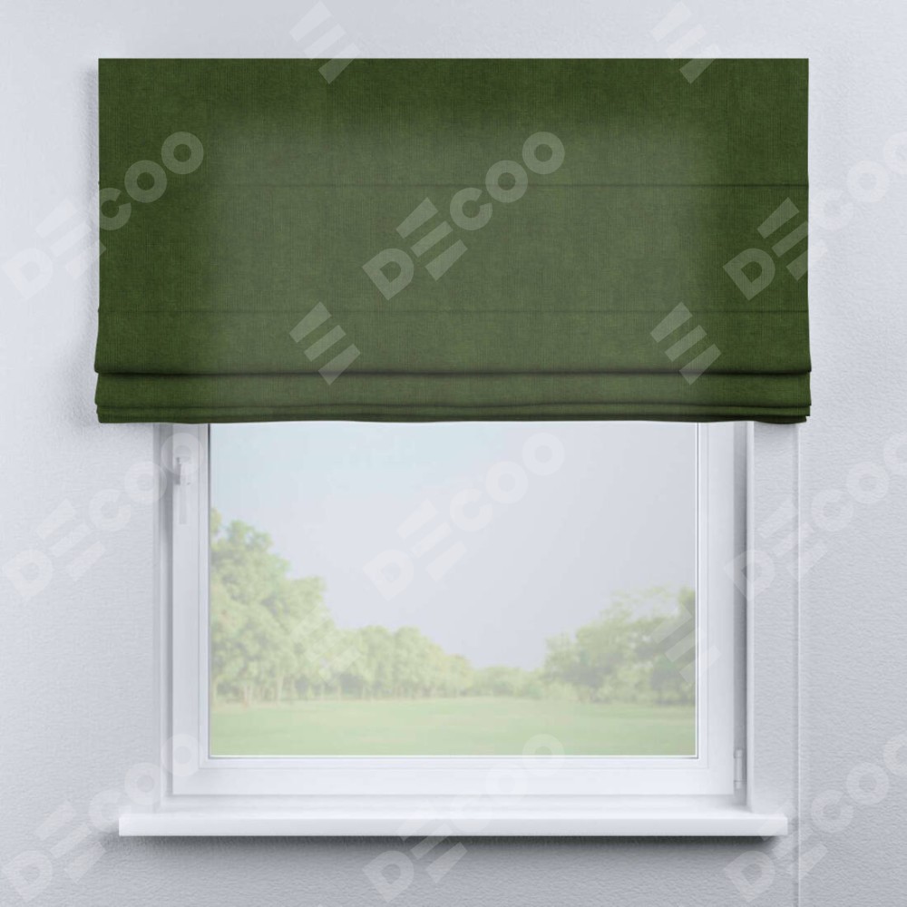 Римская штора «Кортин» для проема, ткань вельвет тёмно-салатовый