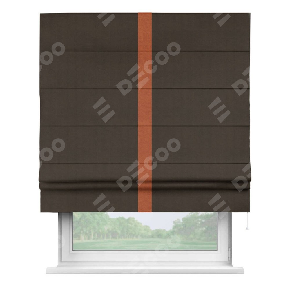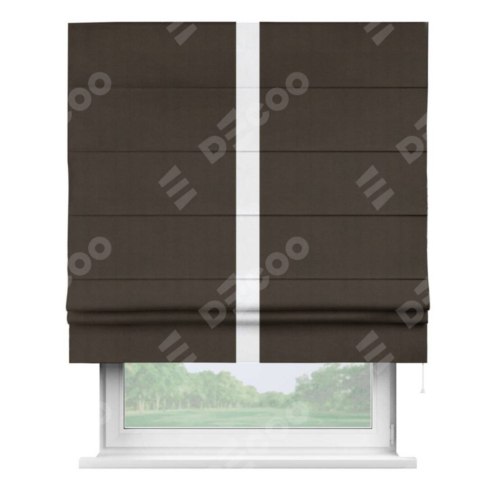 Римская штора «Кортин» с кантом Хайвэй, для проема, ткань вельвет тёмно-коричневый