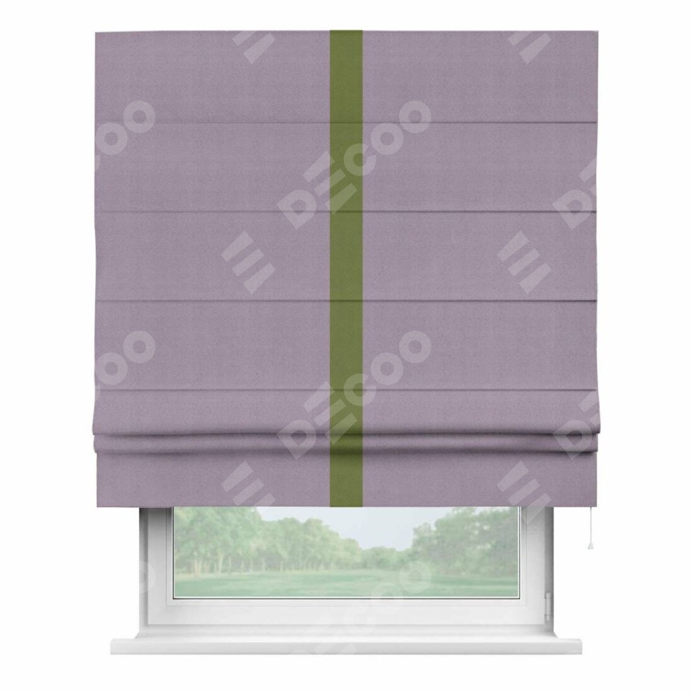 Римская штора «Кортин» с кантом Хайвэй, для проема, ткань блэкаут однотонный светло-сиреневый