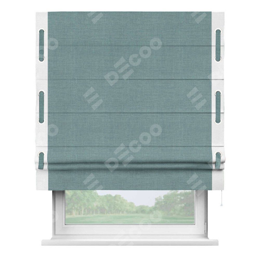 Римская штора «Кортин» с кантом Стрим Дуо, для проема, ткань лён, цвет голубой